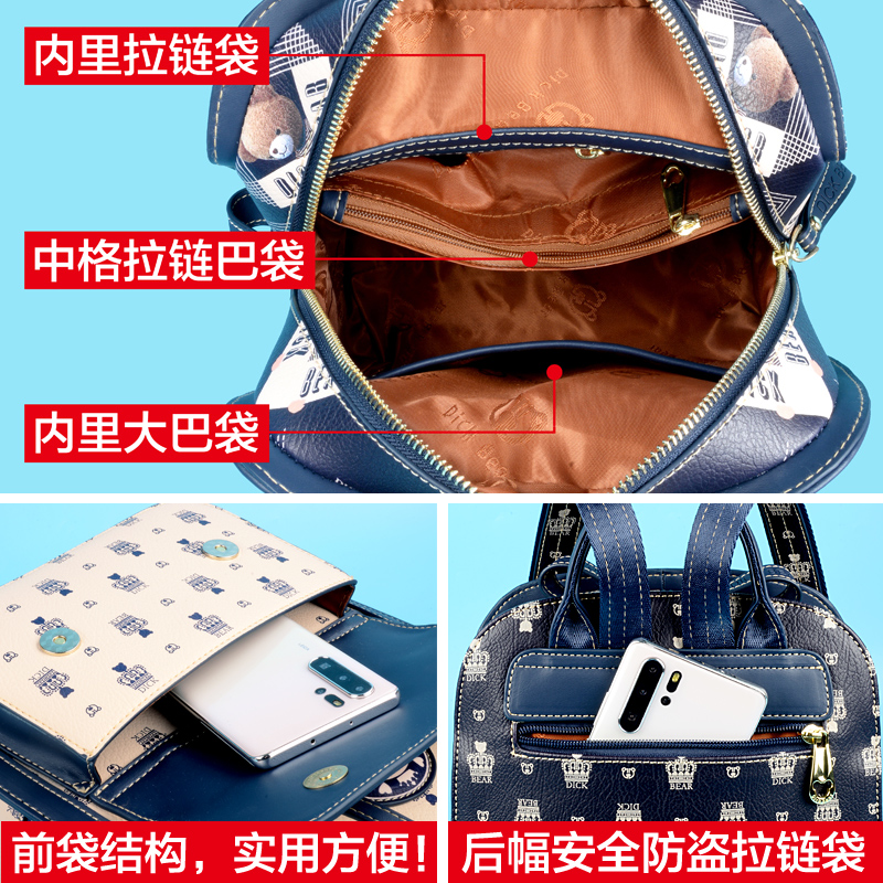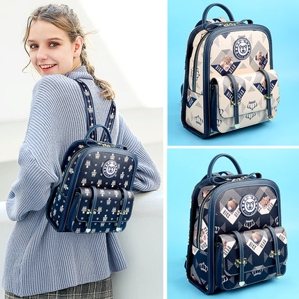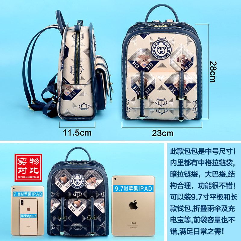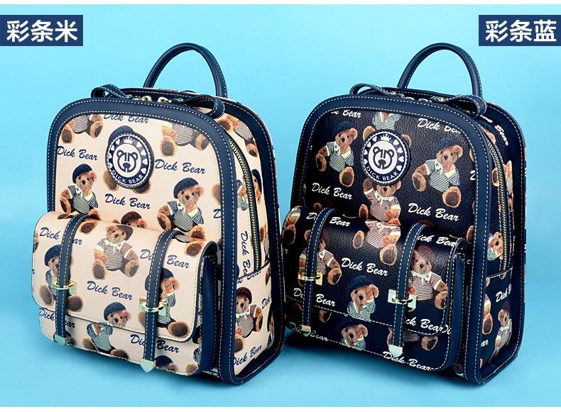 维尼熊双肩包2020新款迪克熊专柜正品日韩拉链背包小熊印花书包女