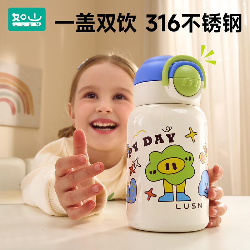 【清仓】如山新款儿童保温杯上学专用宝宝吸管杯婴幼儿双饮保温杯