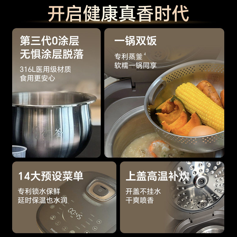 飞利浦新款电饭煲HD7000炫饭煲0涂层IH加热4L家用电饭锅不粘锅4-5