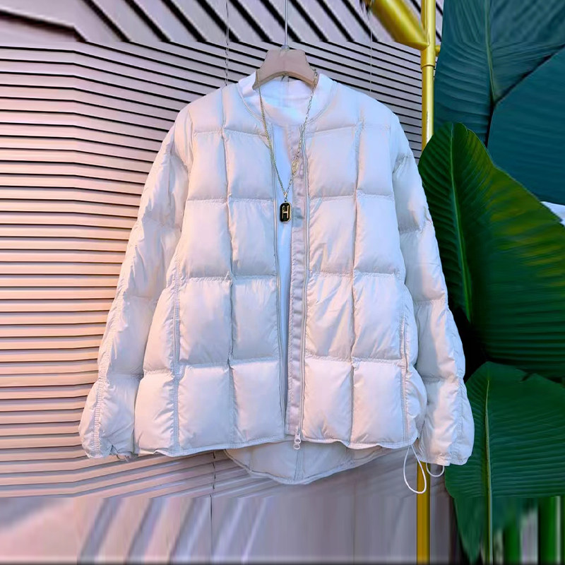 大码女装圆领长袖棉服外套