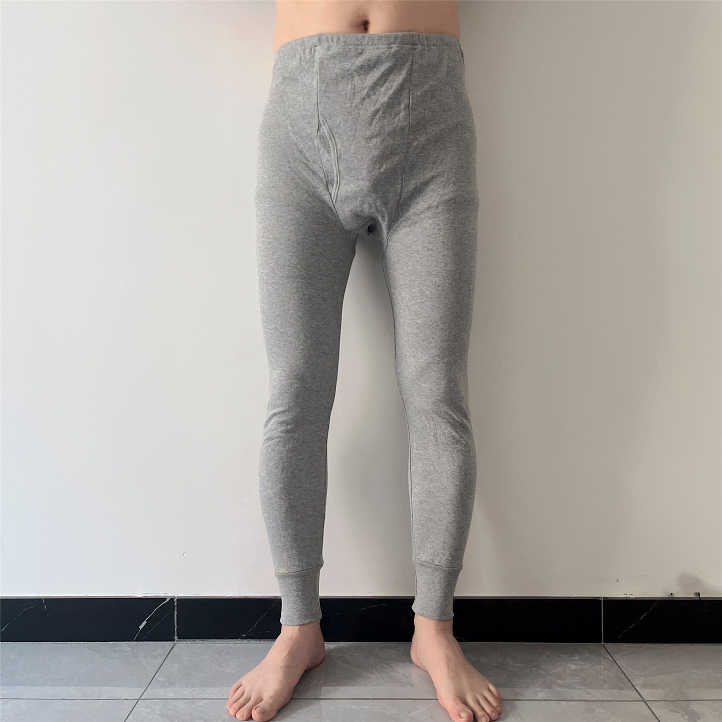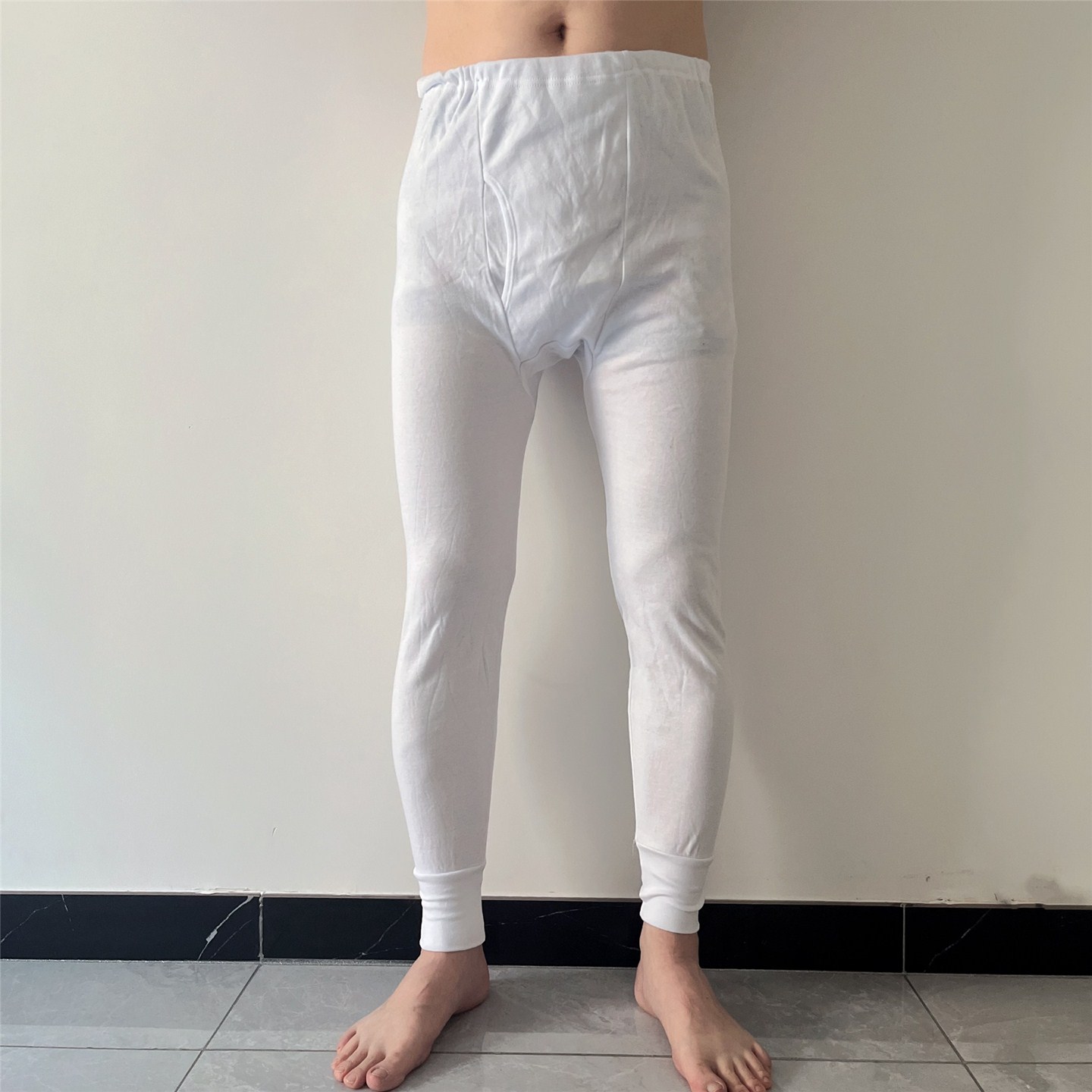 外贸日单男纯棉保暖高腰秋裤100全棉料白色打底长裤内衣单件特价