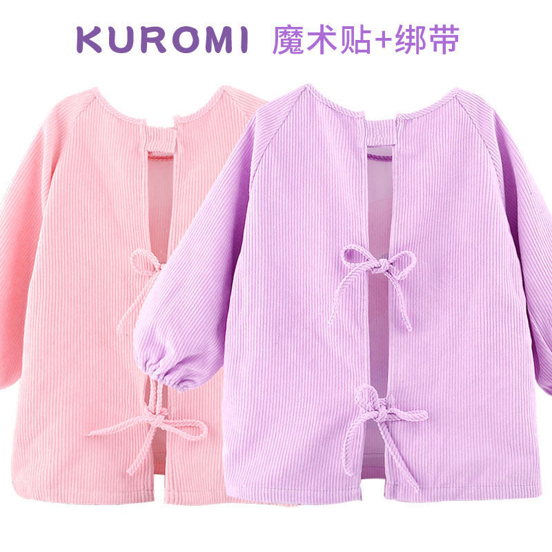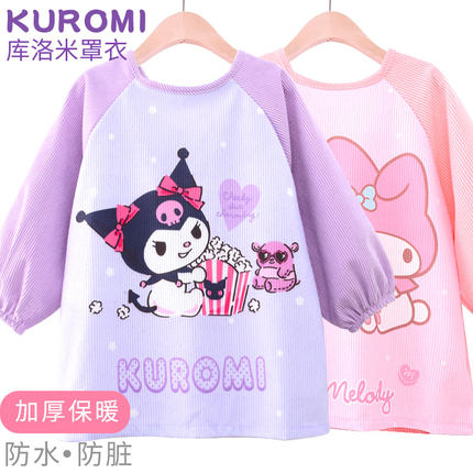 库洛米儿童罩衣秋冬季灯芯绒防水防脏女童围裙女孩宝宝画画衣保暖