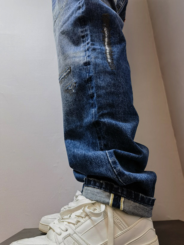 赤耳丹宁牛仔裤破洞直桶宽松