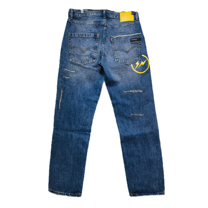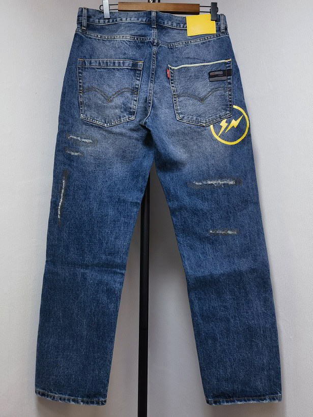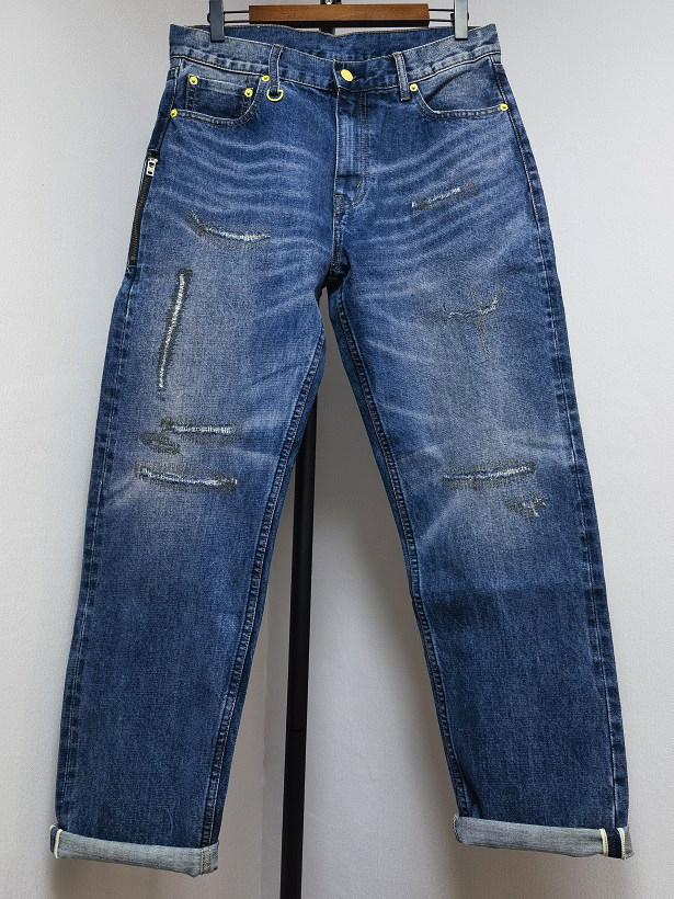 Fenom藤原浩C10黄闪电赤耳丹宁直筒宽松15oz重磅厚料水洗牛仔裤