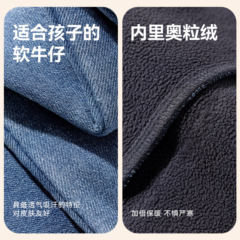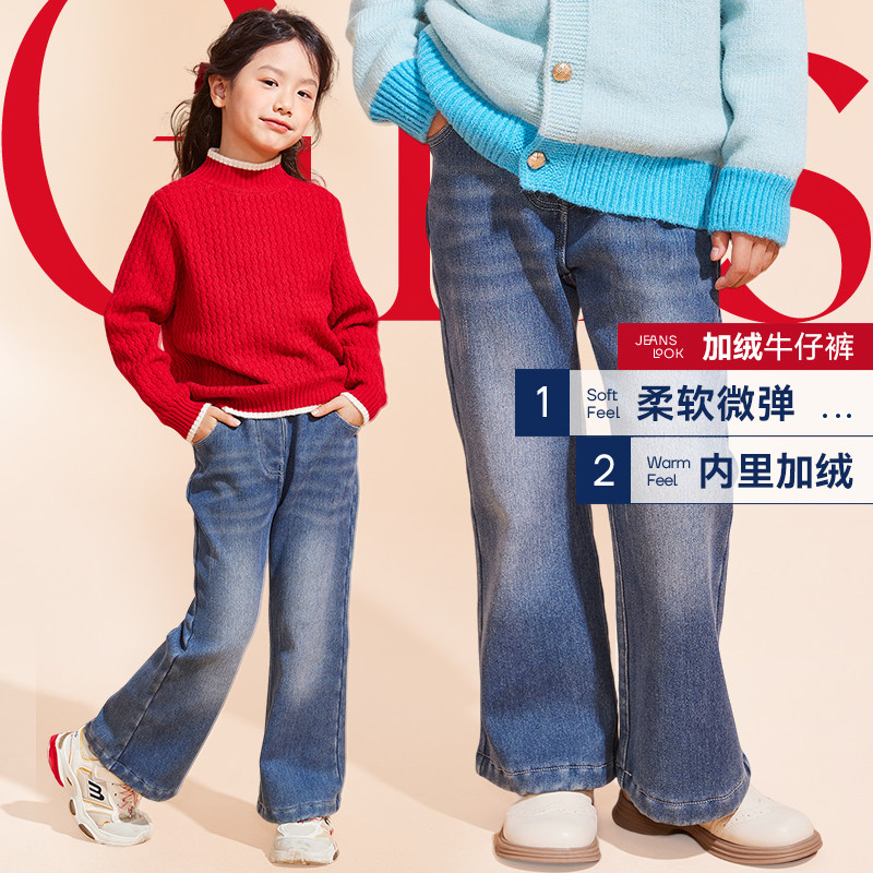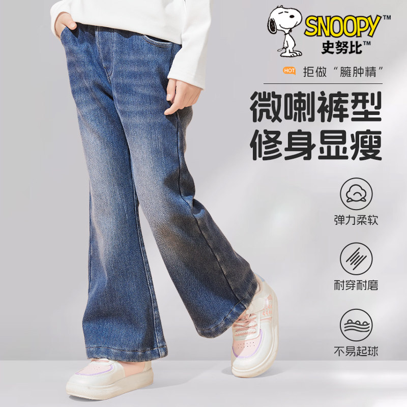 史努比女童加绒牛仔裤冬季洋气女孩喇叭裤冬装长裤儿童裤子秋冬款