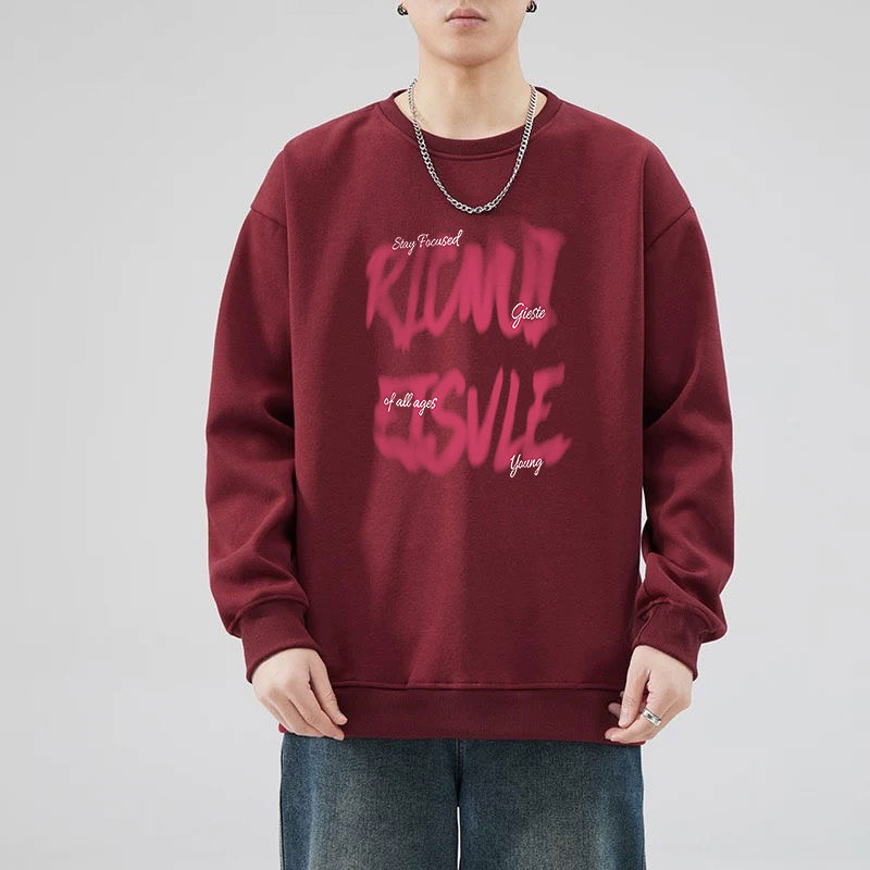 秋冬新款运动休闲薄款印花卫衣男女加绒宽松跑步户外圆领套头上衣