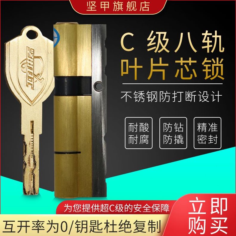 钥匙甲全铜家用防盗门级八轨叶坚超C级锁芯D进户门片卫士通用锁芯