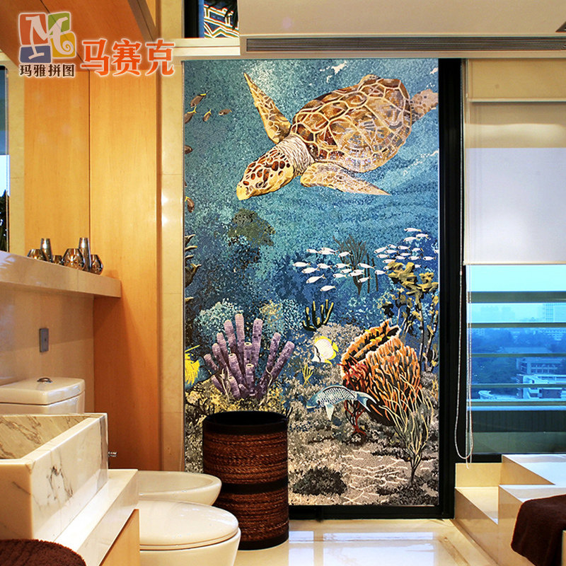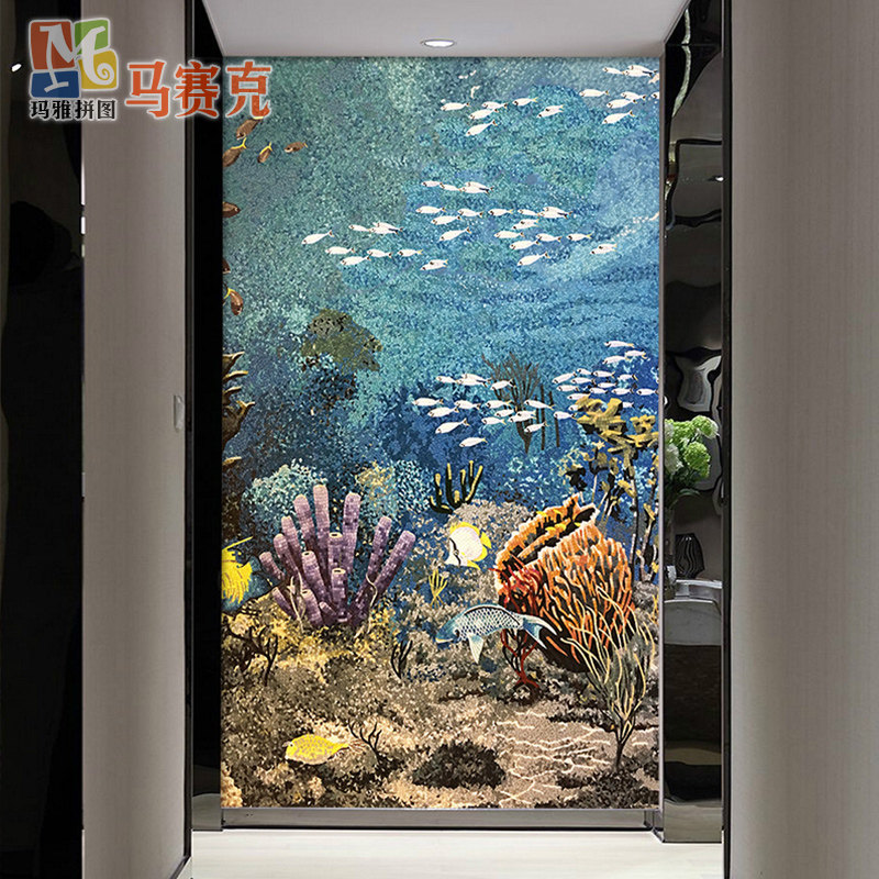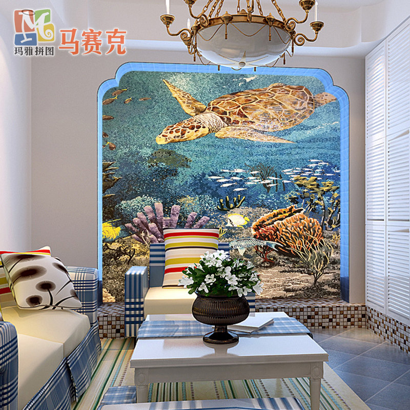 极速精品 地中海风格玄关背景墙 海洋剪画海底Q镶嵌壁画瓷砖马赛