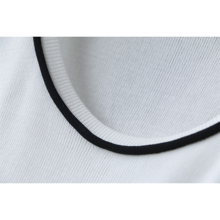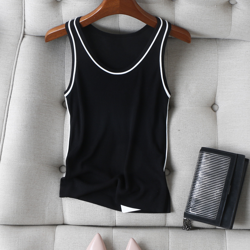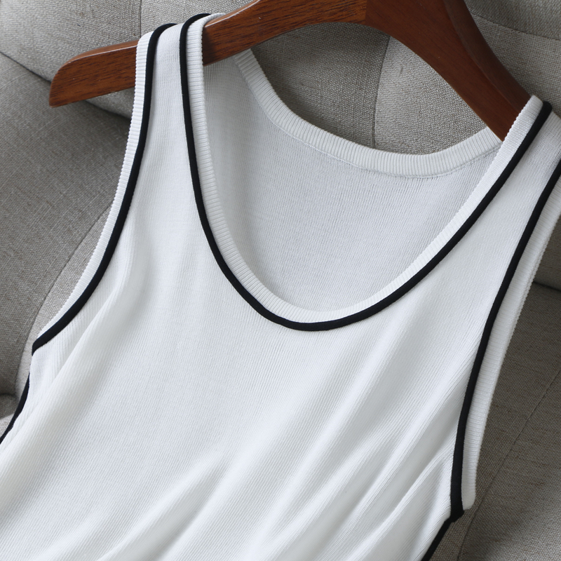 衣橱百搭王~撞色线条设计圆领无袖清凉丝混纺螺纹弹性针织背心女