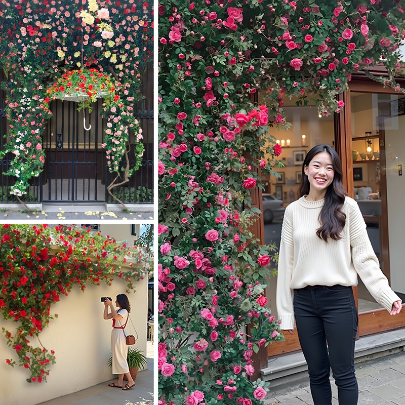 仿真玫瑰花网红花墙瀑布墙壁假花空调管道装饰花藤条遮挡门头花墙