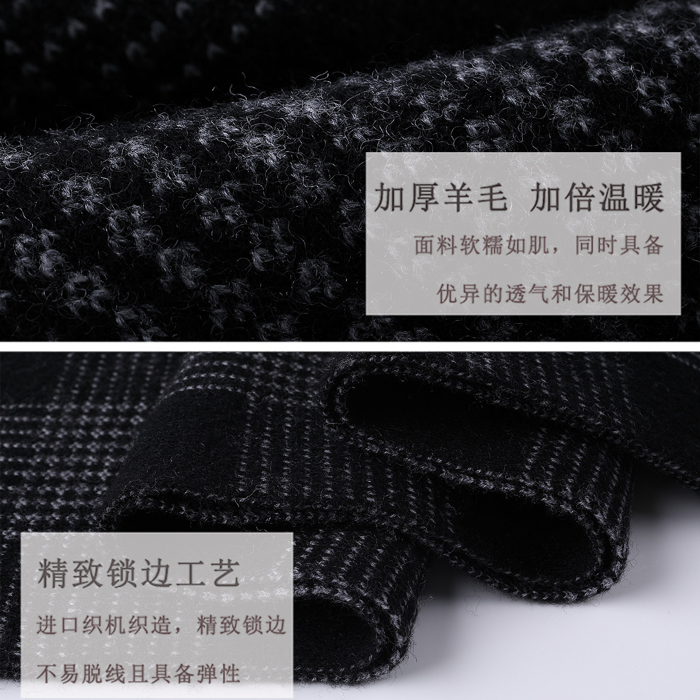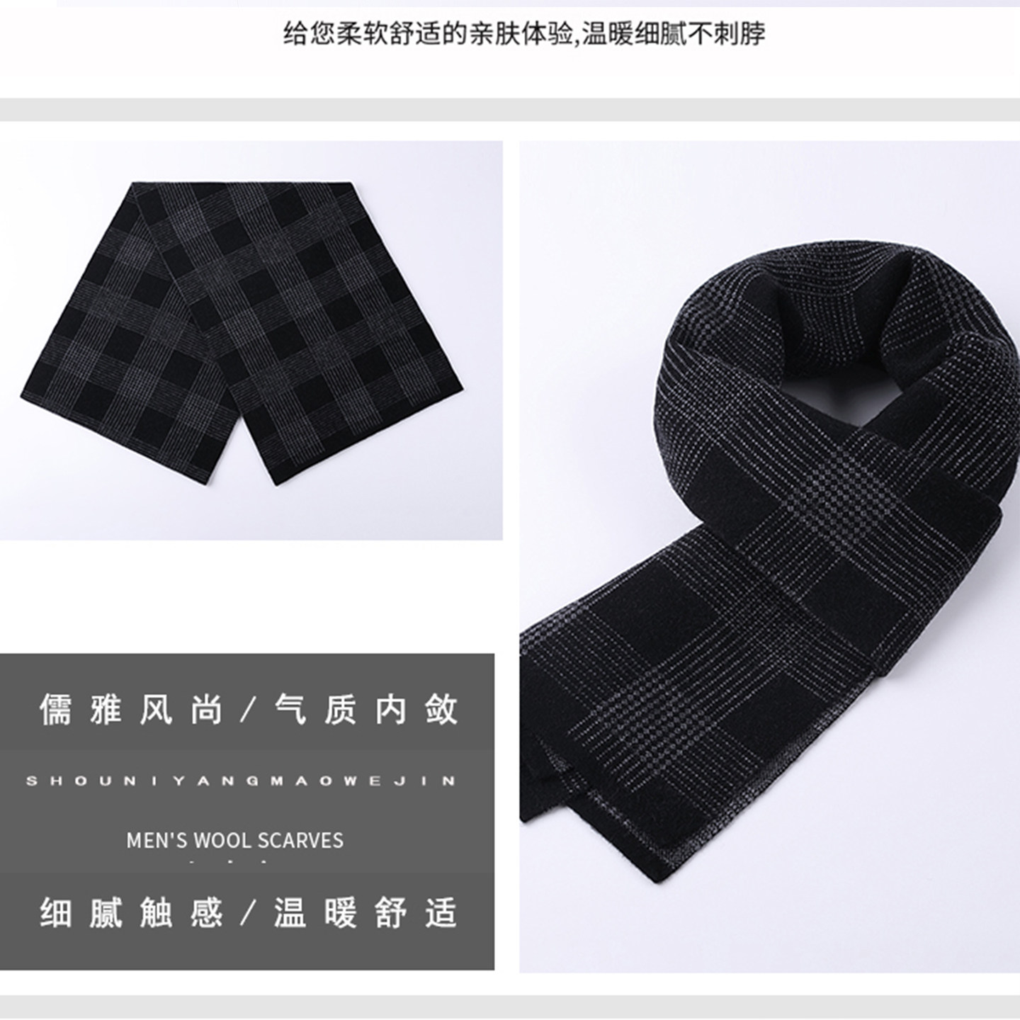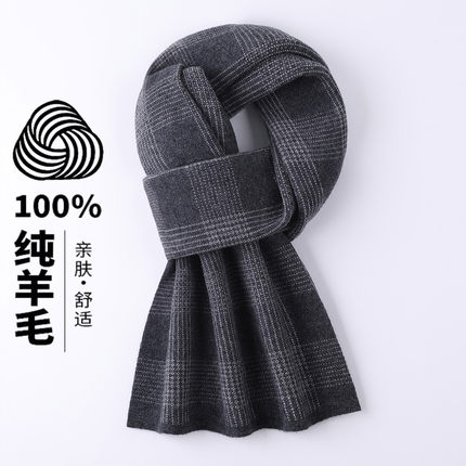 鄂尔多斯市100%羊毛围巾2025新款男士冬季格子高级感围脖礼物男生
