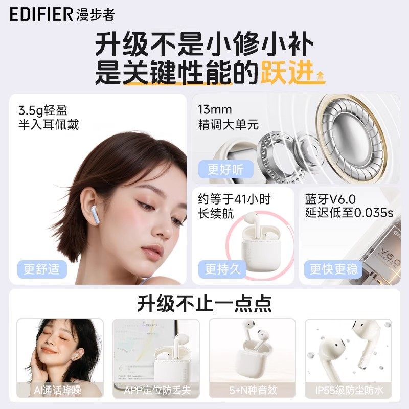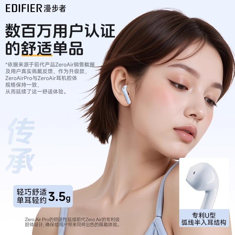 漫步者花再Zero Air Pro无线蓝牙耳机降噪运动2025新款超长续航型