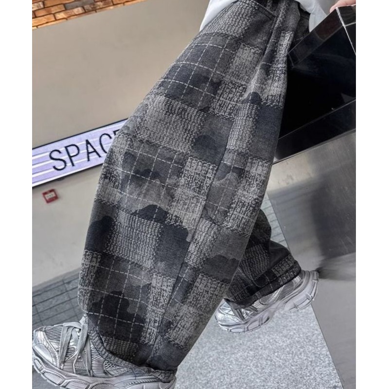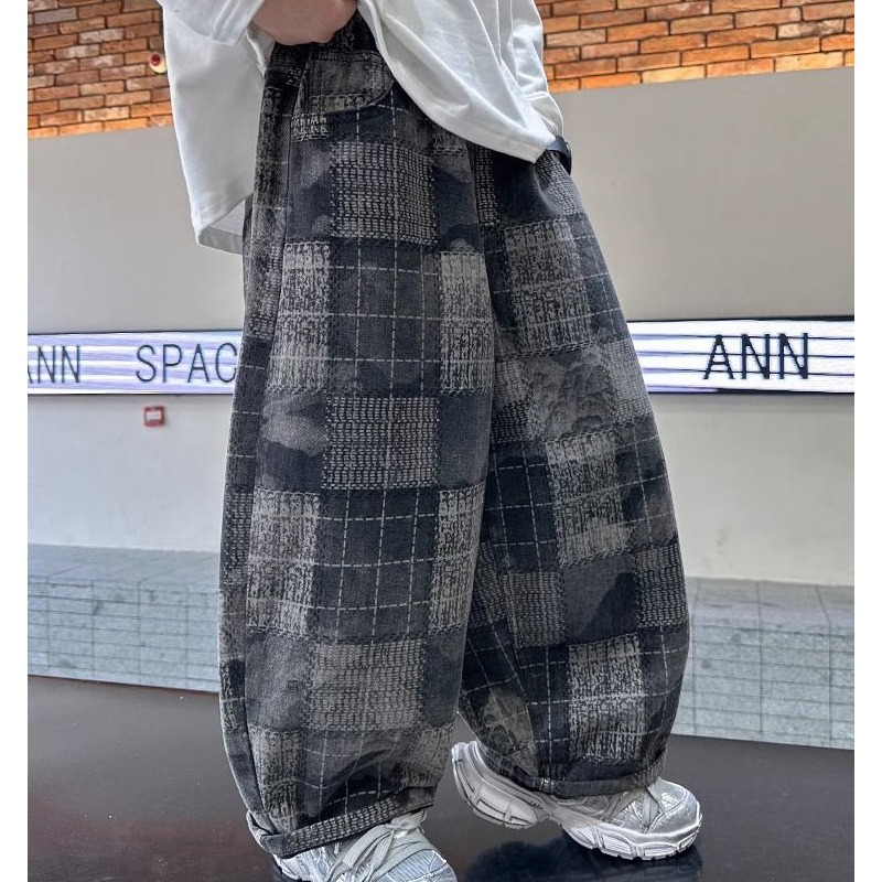 男童格子裤子秋款2025新款儿童春秋装运动休闲裤男孩中大童直筒裤