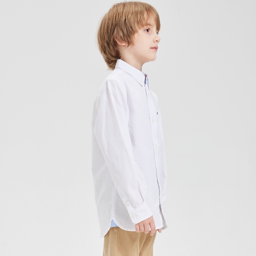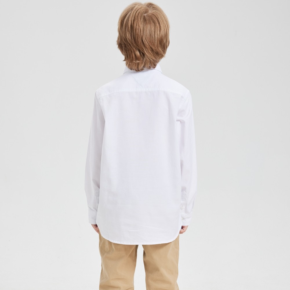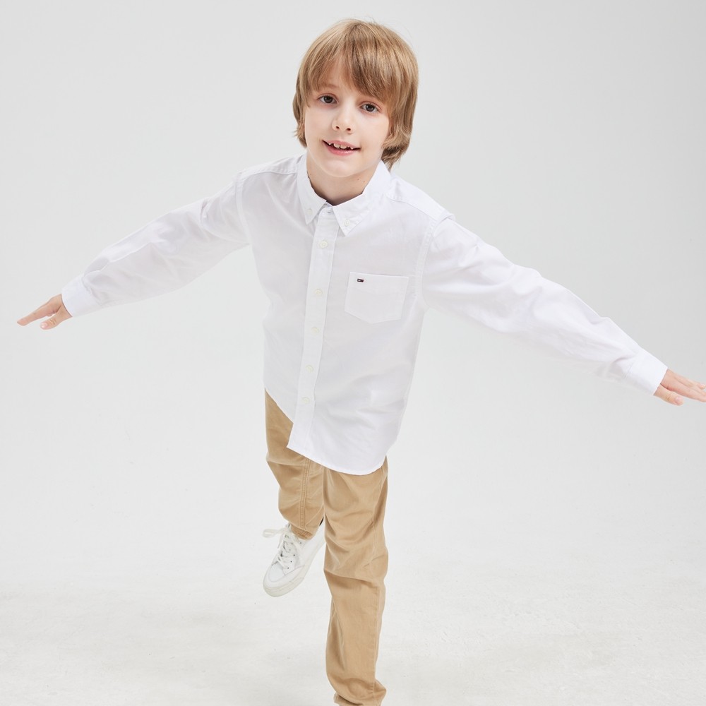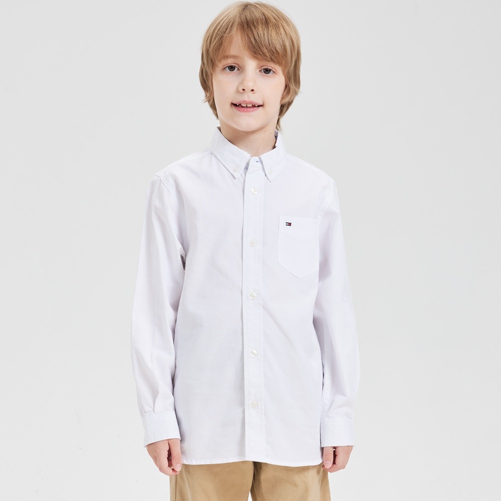 潮牌儿童白衬衫男童女童纯棉长袖衬衣中小学生纯棉白色上衣