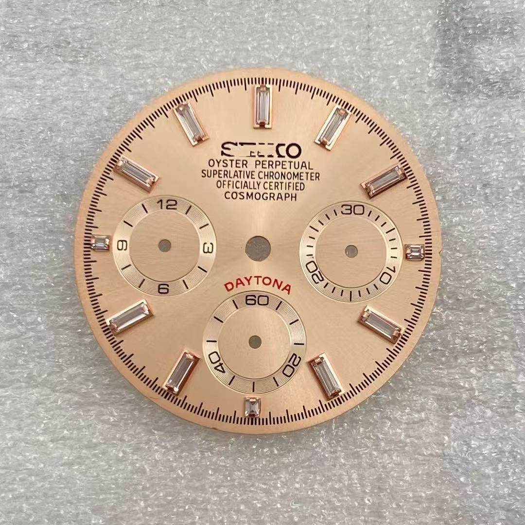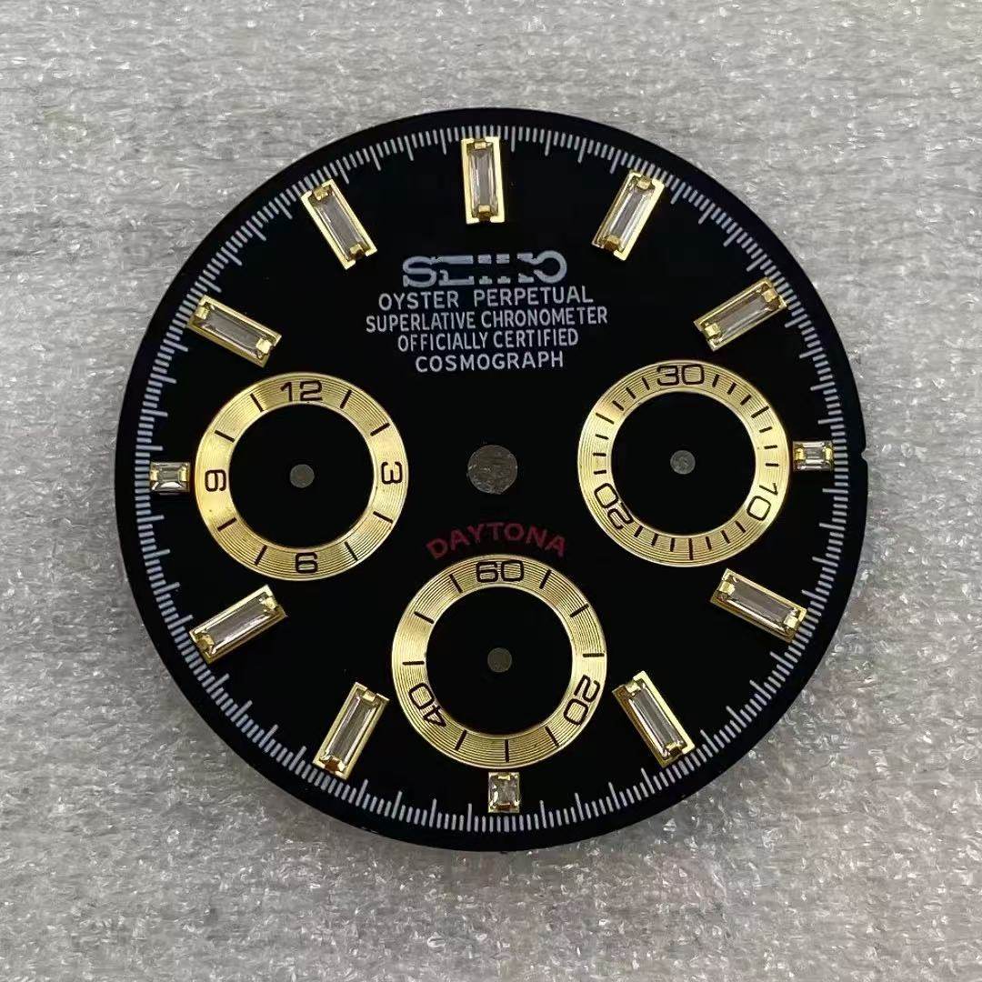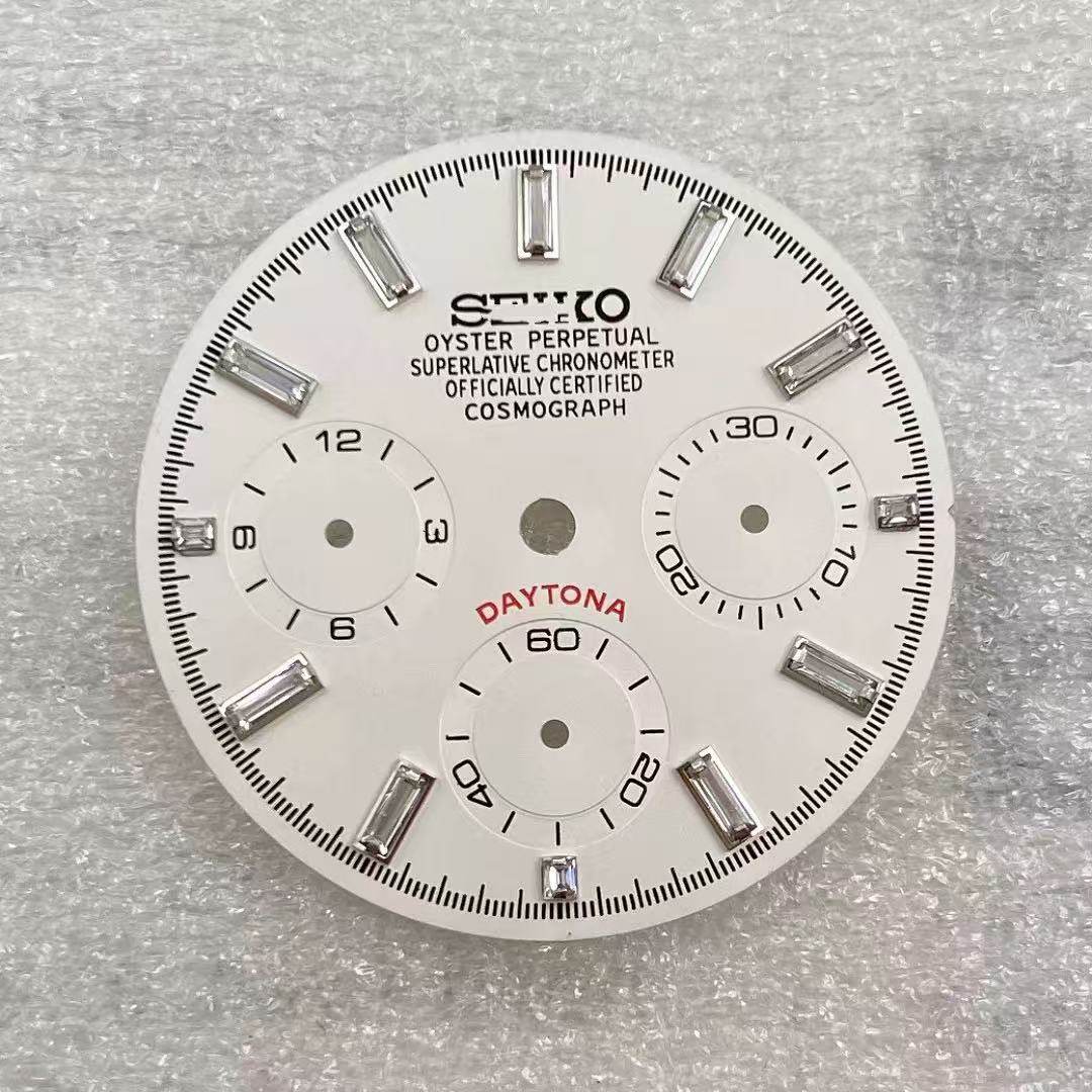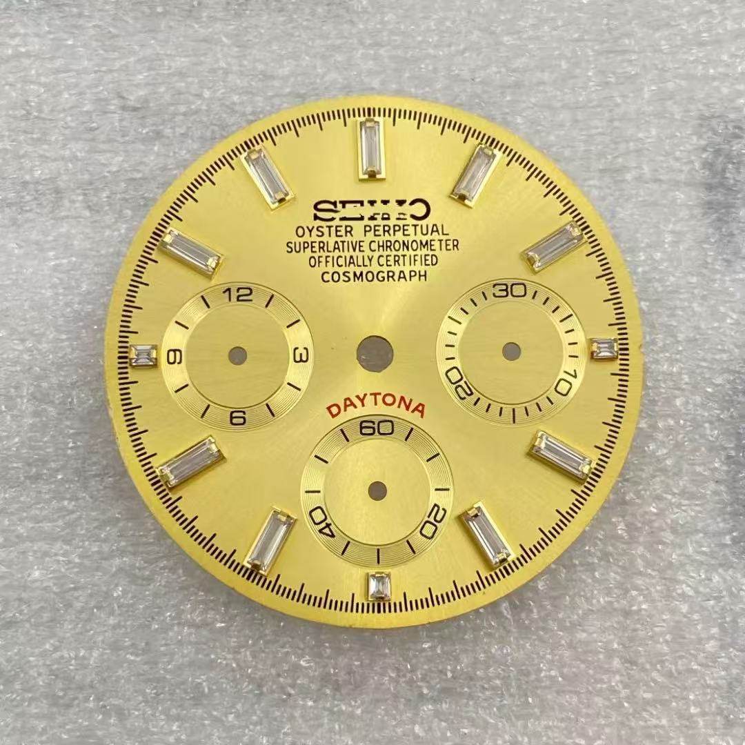 新款VK63石英机芯表盘29.5mm改装多功能计时熊猫水晶钉手表配件