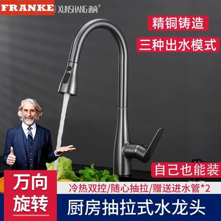 弗兰卡官方厨房抽拉式水龙头冷热家用水槽洗碗池菜盆可伸缩