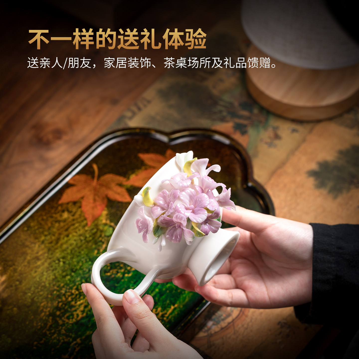 非遗手工陶瓷釉下彩绣球花咖啡杯水杯茶杯轻奢高颜值茶桌装饰摆件