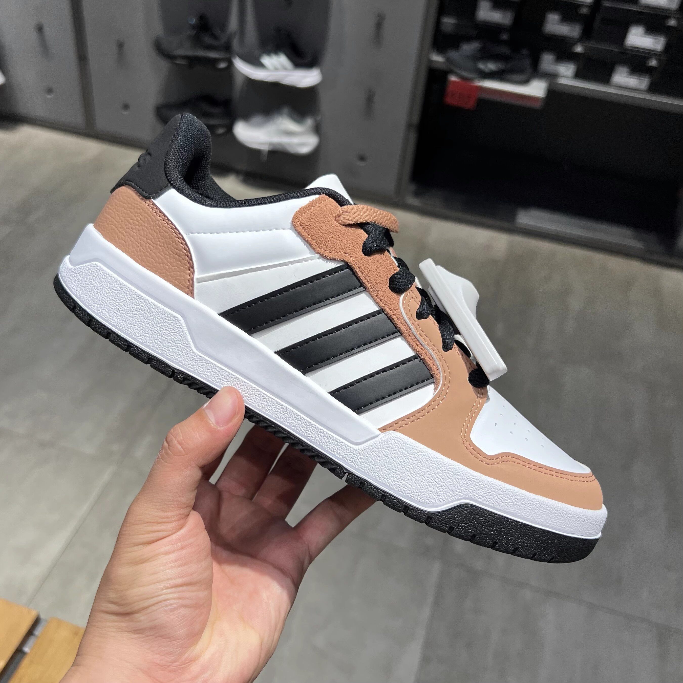 阿迪达斯板鞋男鞋新款透气皮面运动鞋卡其色美式复古网篮球小白鞋