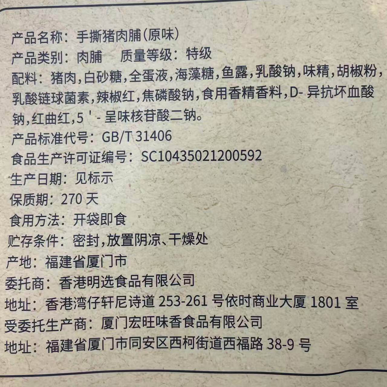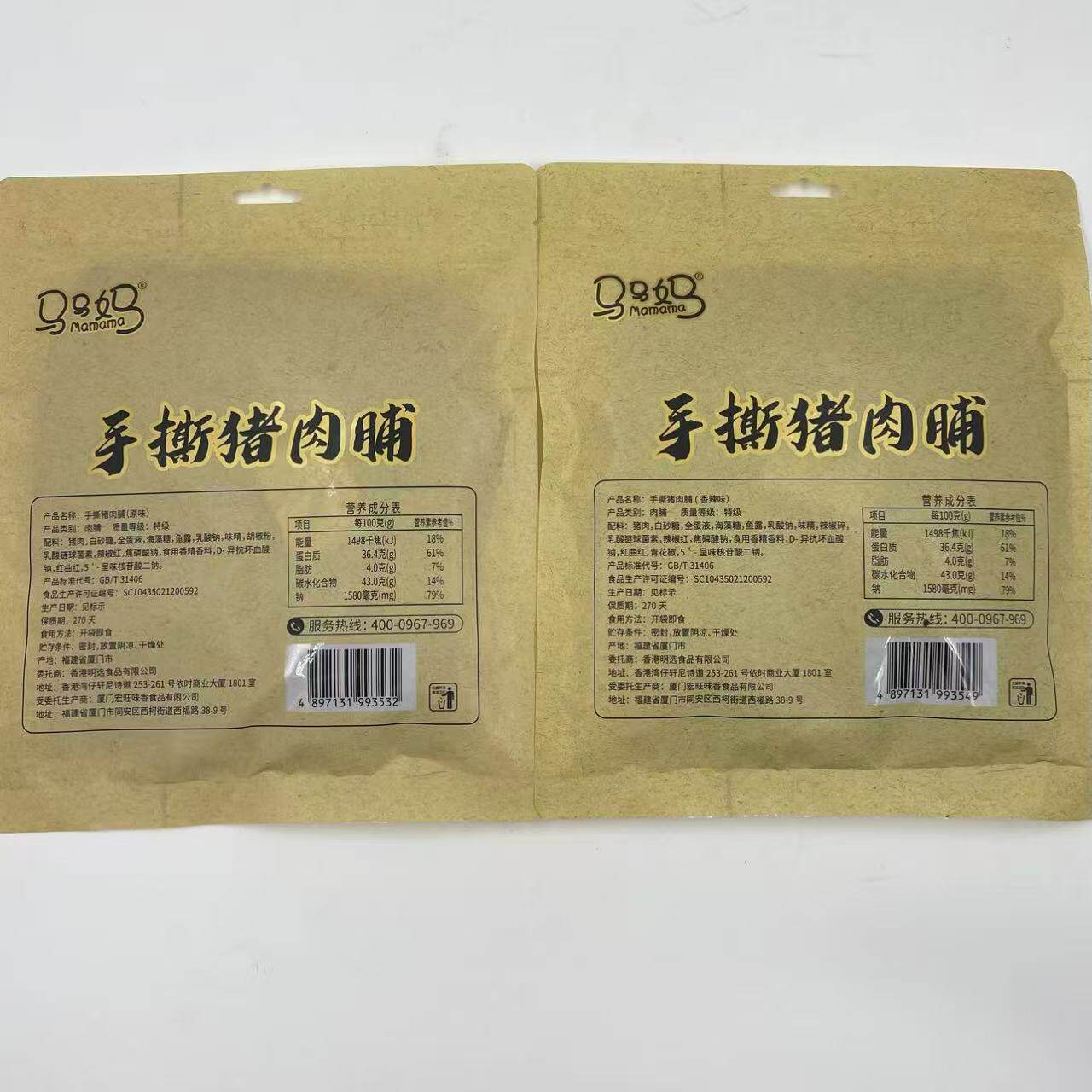 马马妈手撕猪肉脯200g发4袋包邮香辣味原味传承大片原切闽南特产T