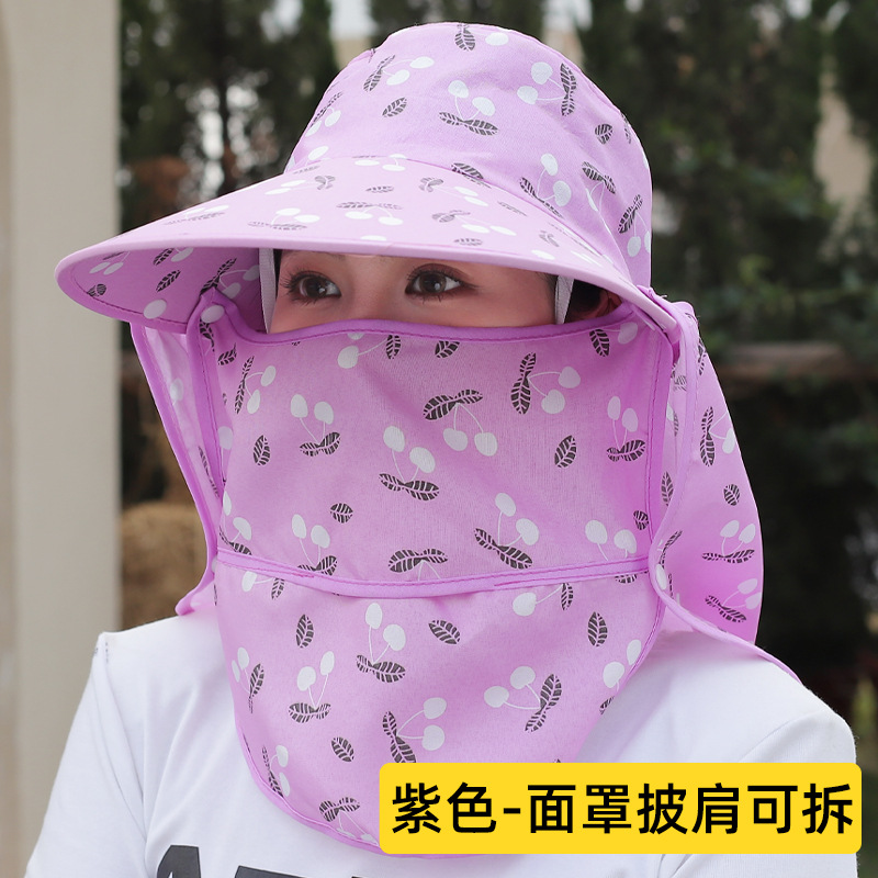 夏季采茶防晒口罩帽子女遮阳太阳帽遮脸护颈防紫外线骑车高顶透气