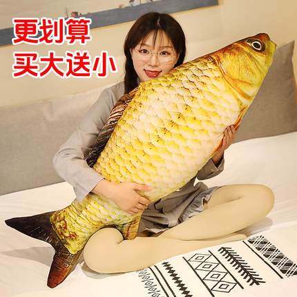 创意鲫鱼公仔鱼玩偶毛绒玩具仿真鱼抱枕枕头3d搞怪儿童男生男孩