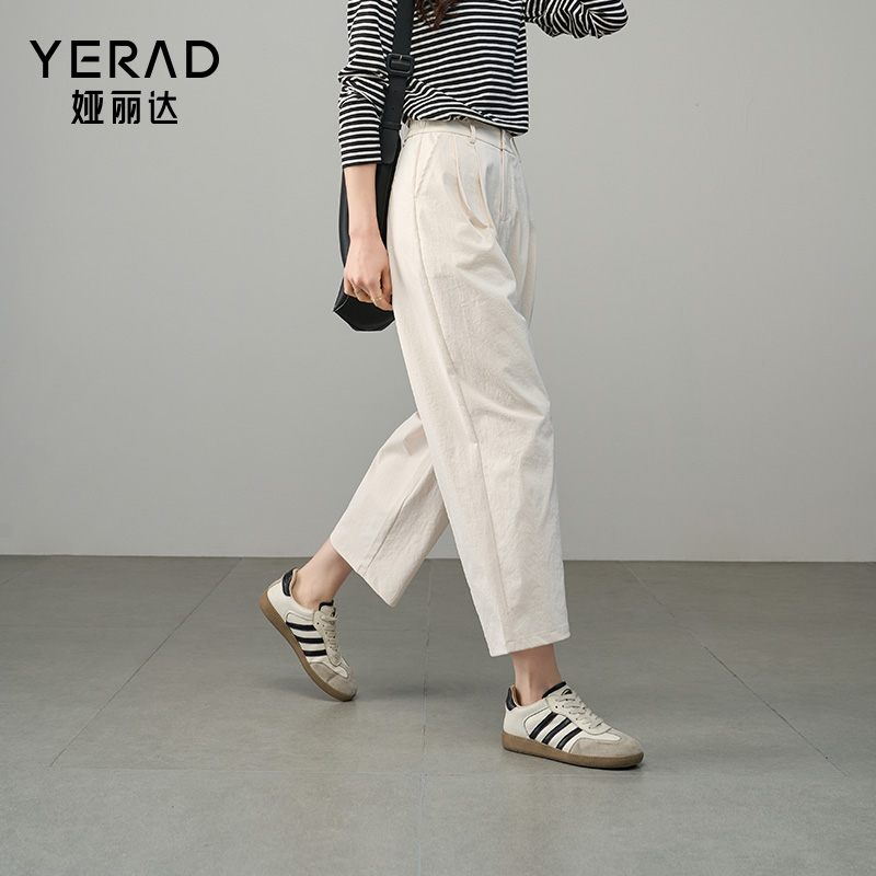 娅丽达超态棉阔腿裤女秋季休闲裤2025新款小个子裤子九分裤直筒裤