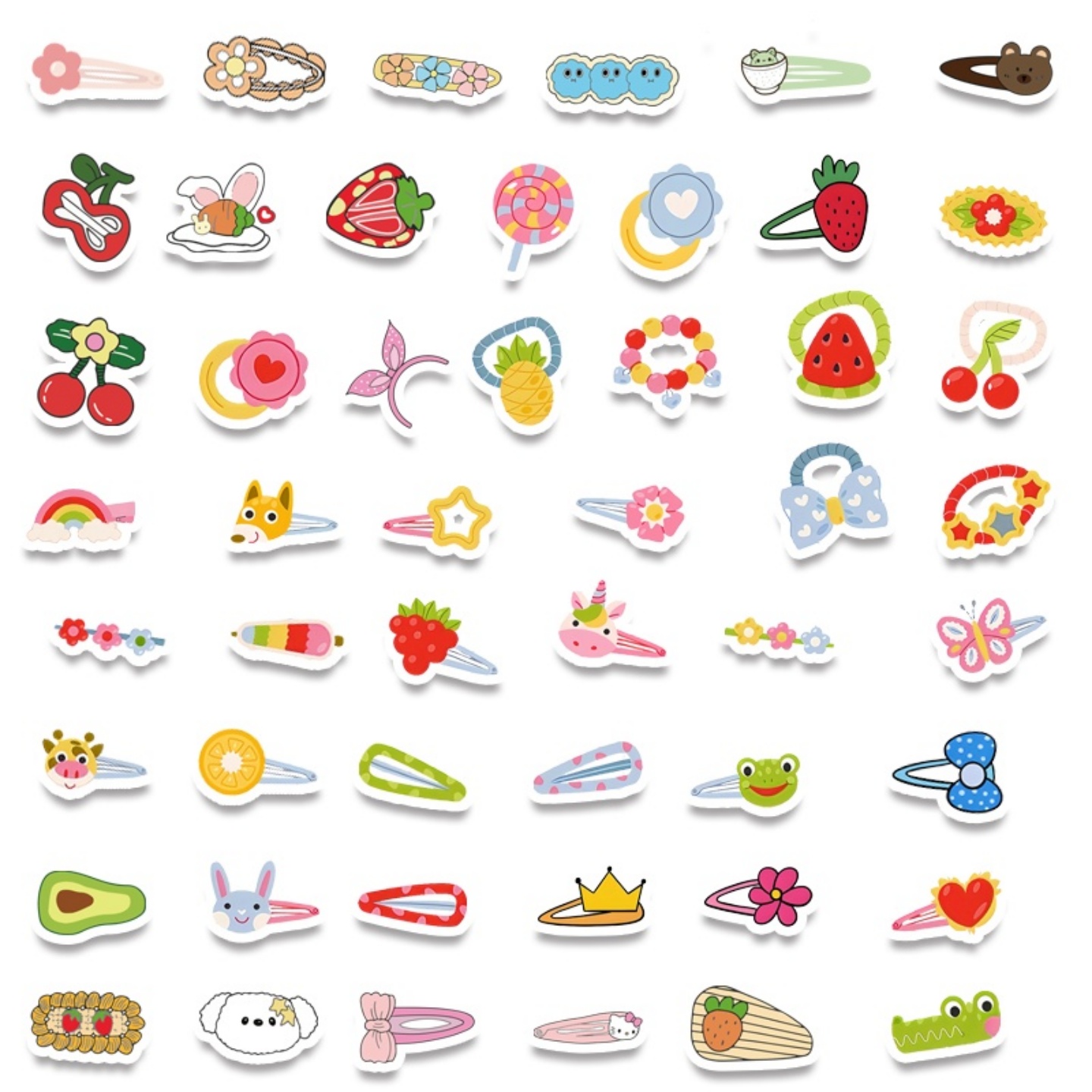 50张迷你卡通可爱透明小花花发夹少女心涂鸦贴纸行李箱笔记本电脑滑板车吉他手机壳头盔防水无痕不留胶贴纸