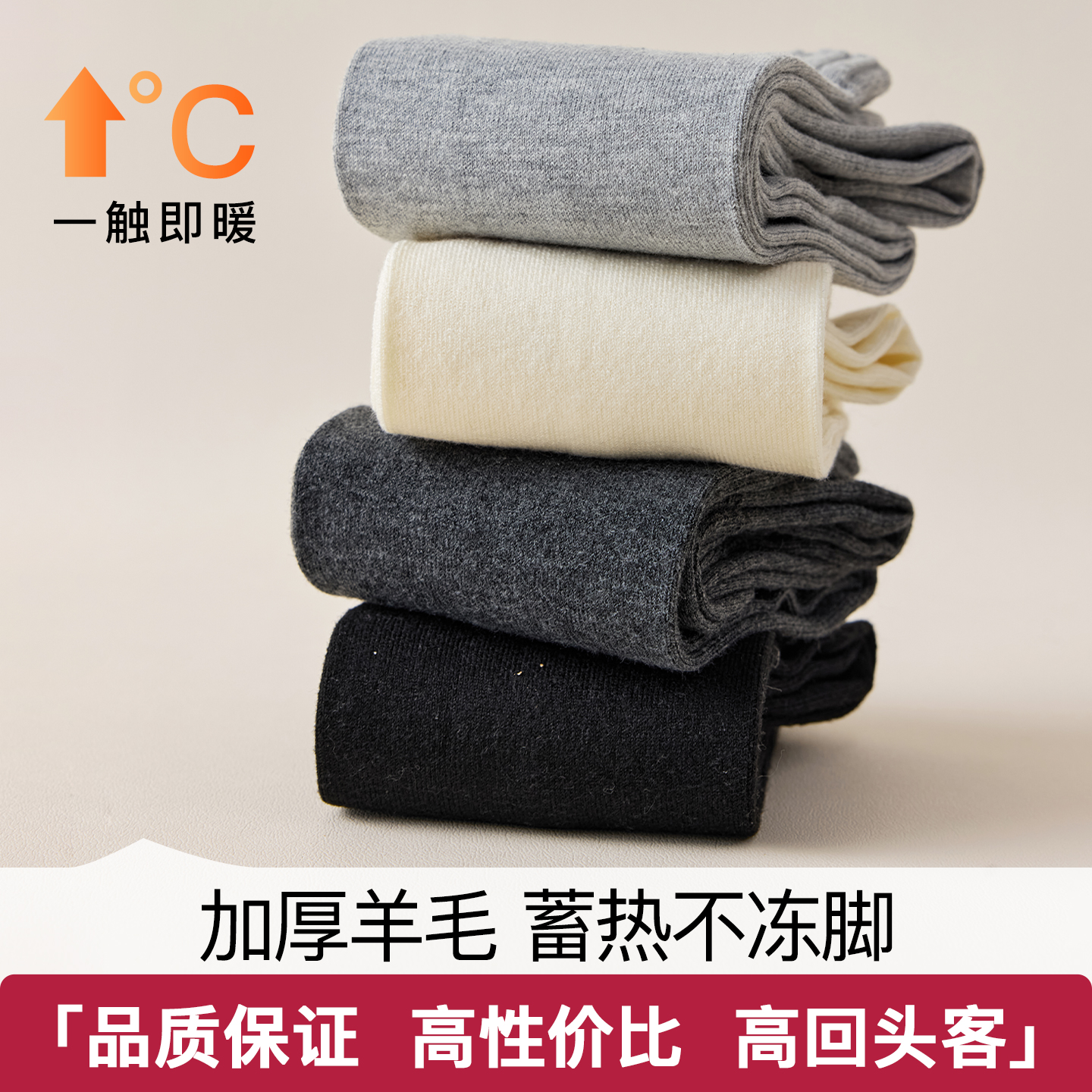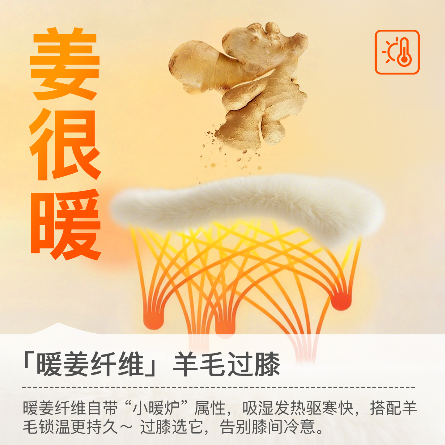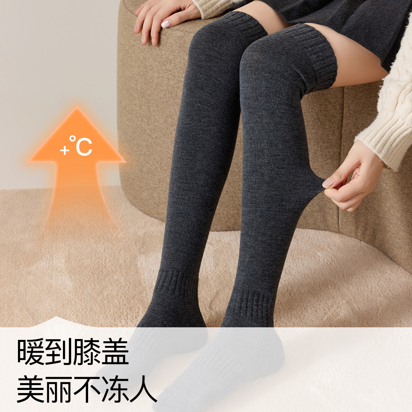 生姜发热羊毛保暖过膝长筒袜女款