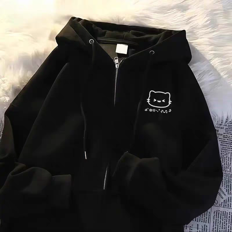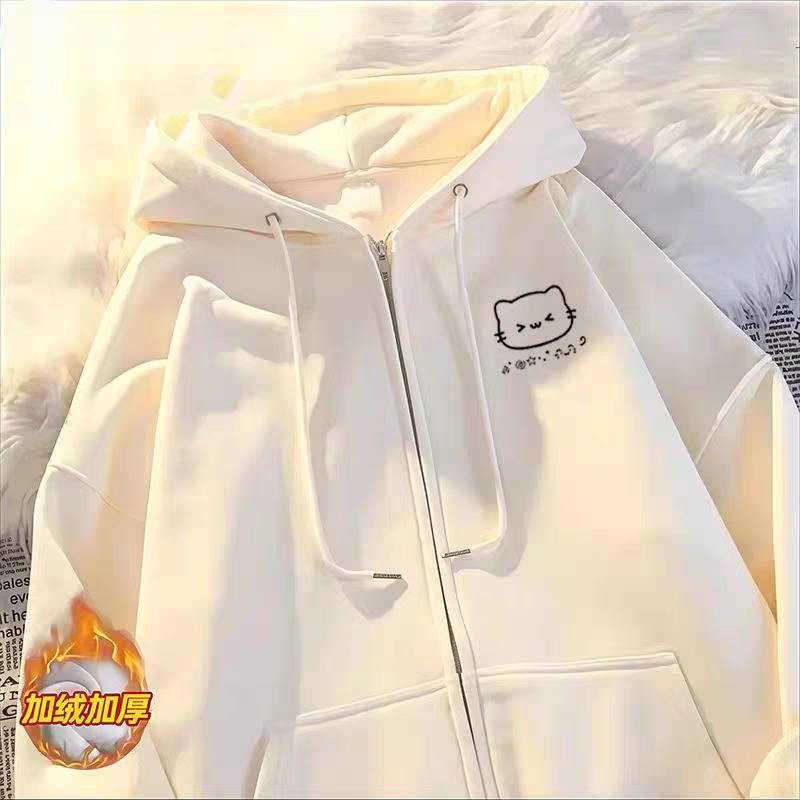女童纯棉连帽拉链卫衣2025新款中大童秋冬季宽松休闲加绒开衫外套