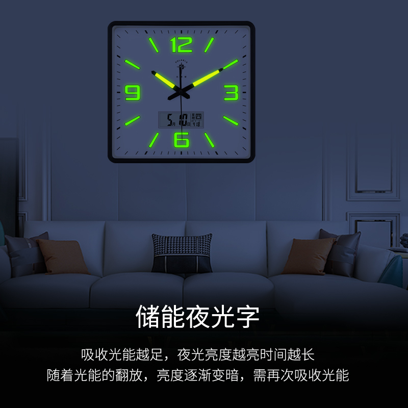 北极星方形客厅静音挂钟卧室时尚简约挂墙时钟电子日历家用石英钟