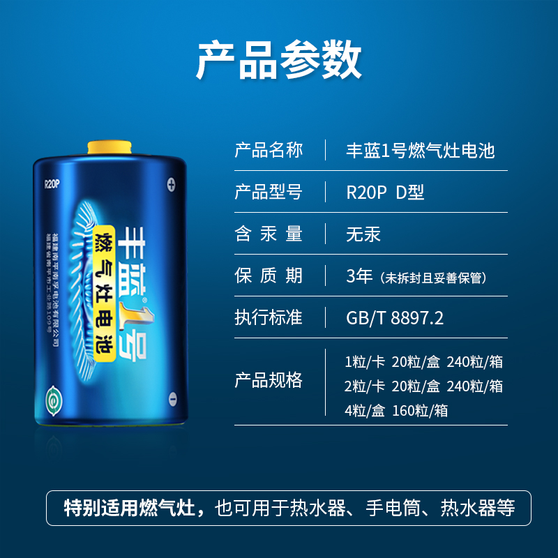 南孚丰蓝一号燃气灶电池专用 1号大号电池适用热水器车位锁按摩仪
