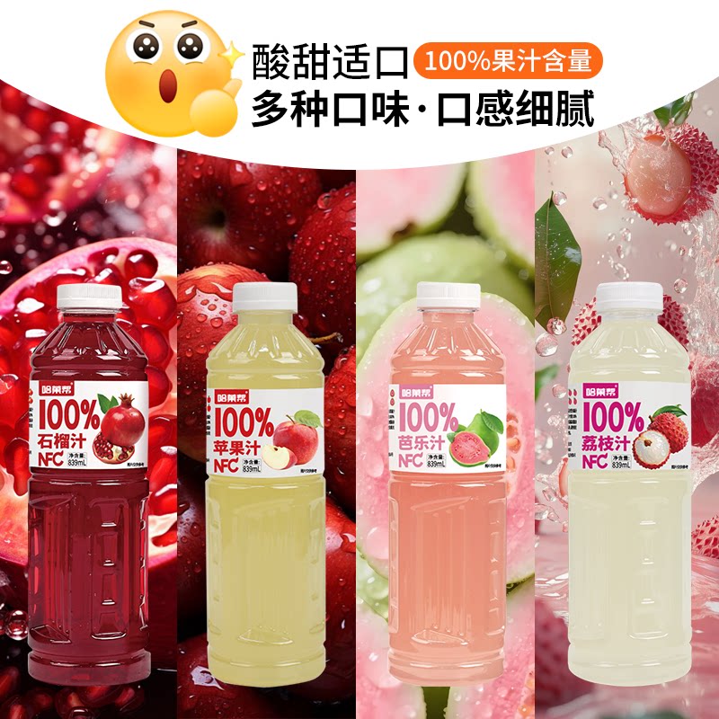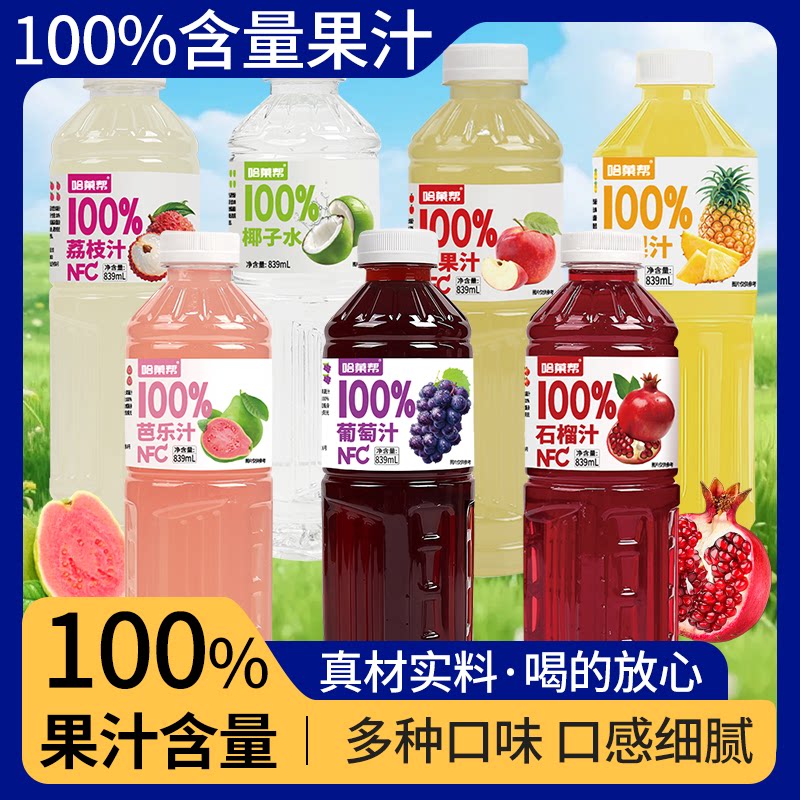 100%NFC果汁0添加石榴汁凤梨汁苹果汁葡萄汁多口味组合装果汁饮品