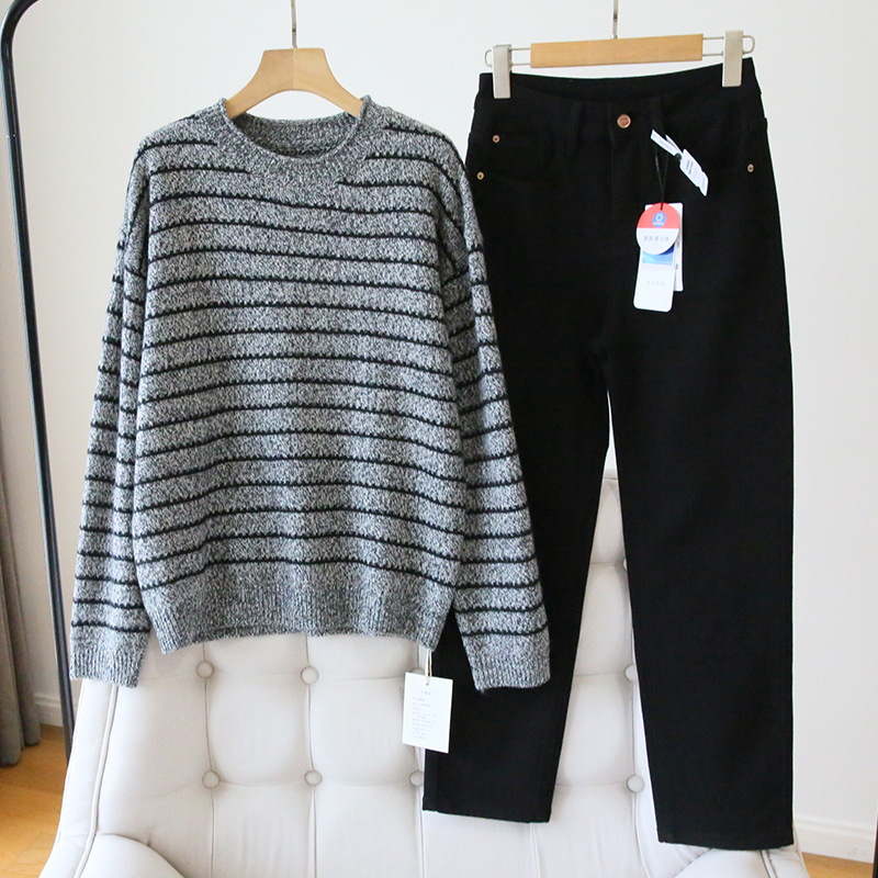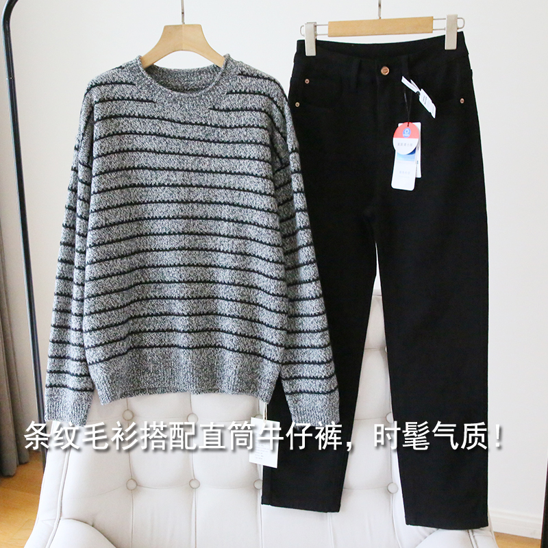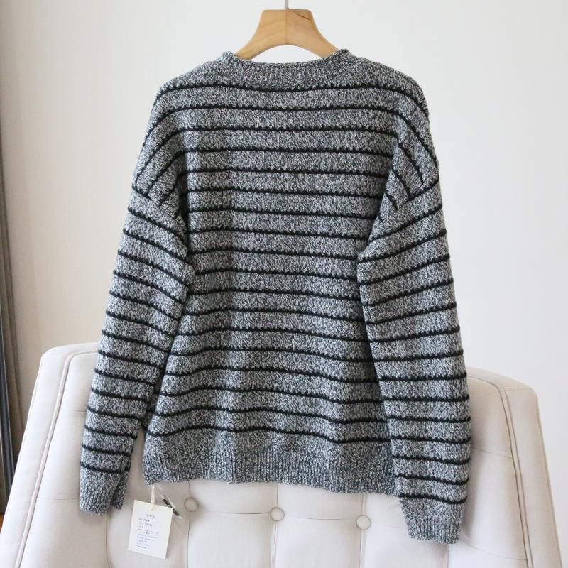 慵懒风条纹羊毛针织衫女宽松毛衣