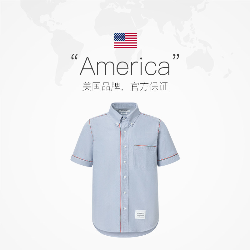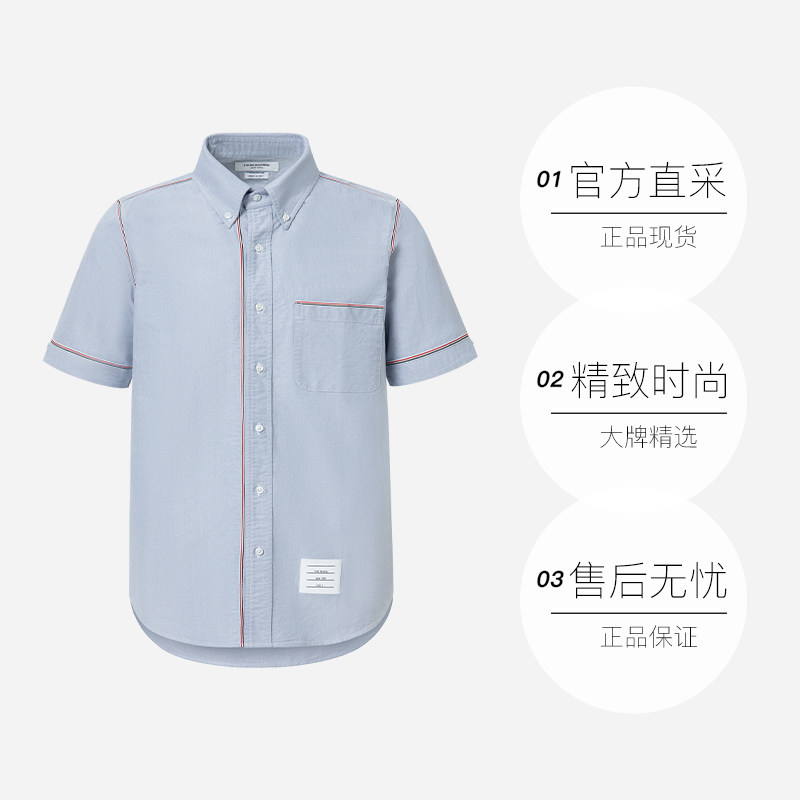 【自营】Thom Browne男士经典条纹棉质休闲短袖衬衫