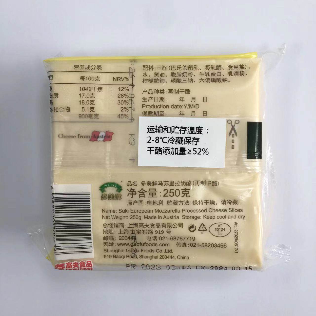 多美鲜马苏里拉奶酪片12片披萨三明治芝士焗饭拉丝Mozzarella250g