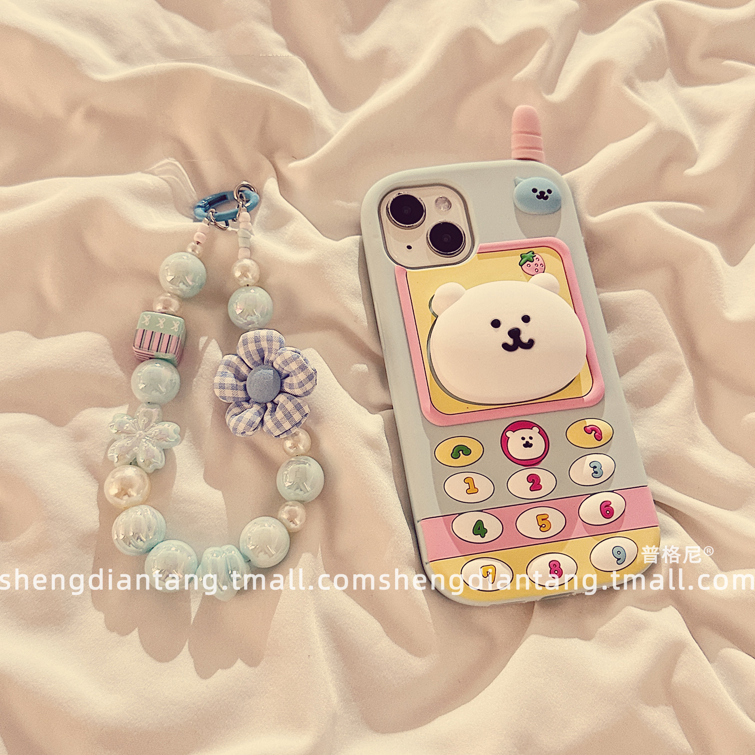自嘲熊大哥大支架适用苹果16ProMax手机壳iphone16新款15可爱14创意13立体卡通女款15promax软硅胶保护套链条