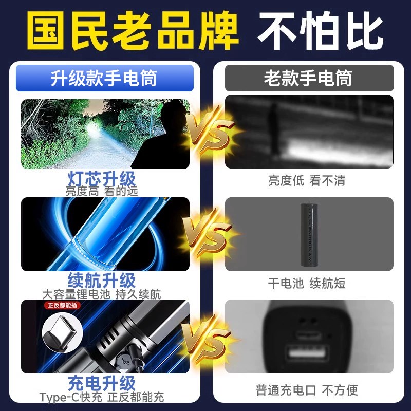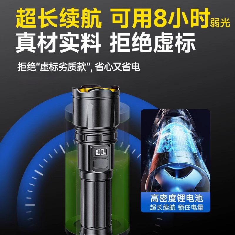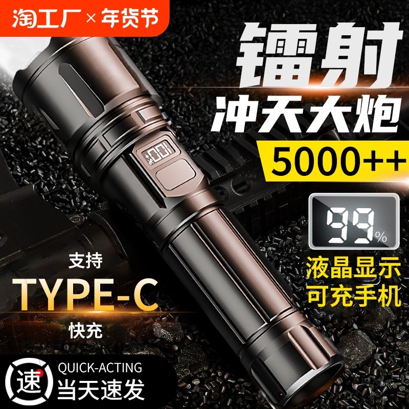 2024新款强光手电筒充电户外超亮远射多功能战术白激光小便携家用