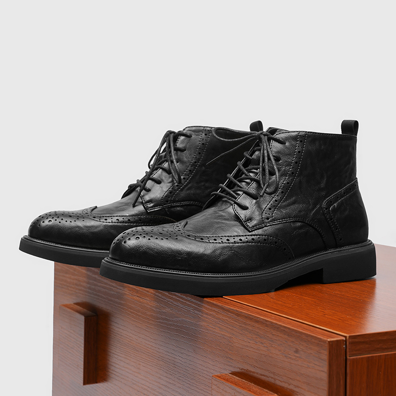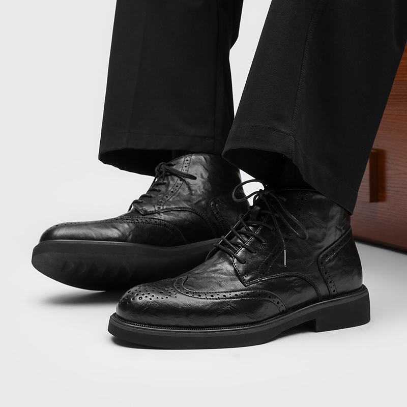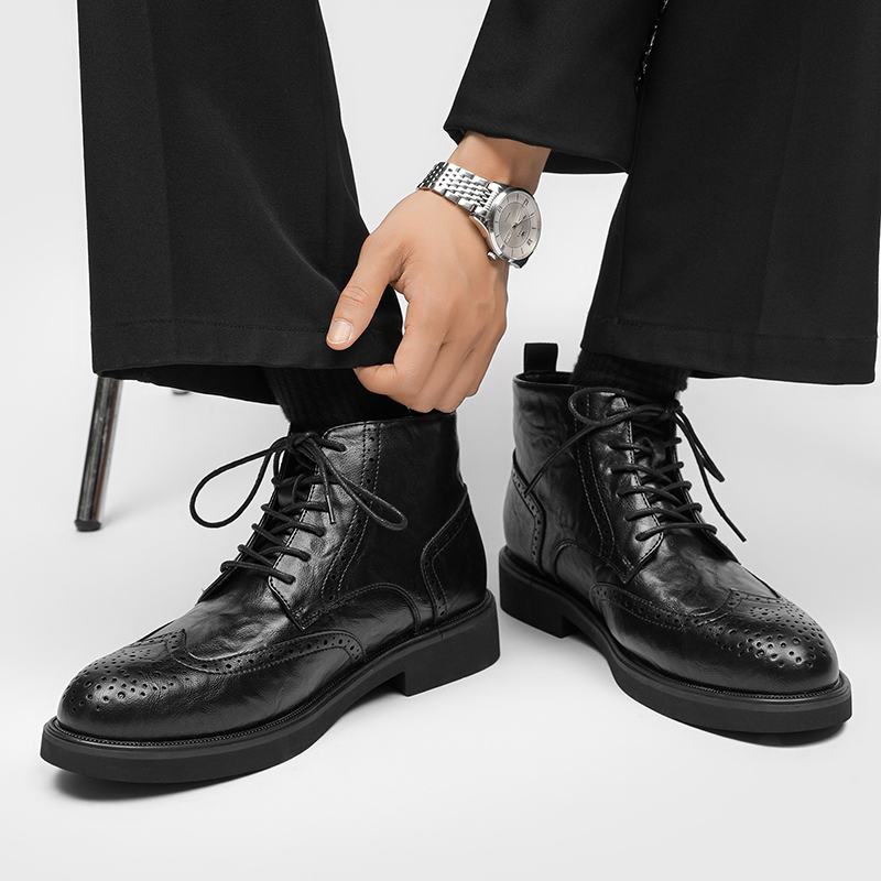 马丁靴男真皮布洛克雕花高帮皮鞋