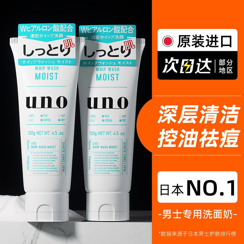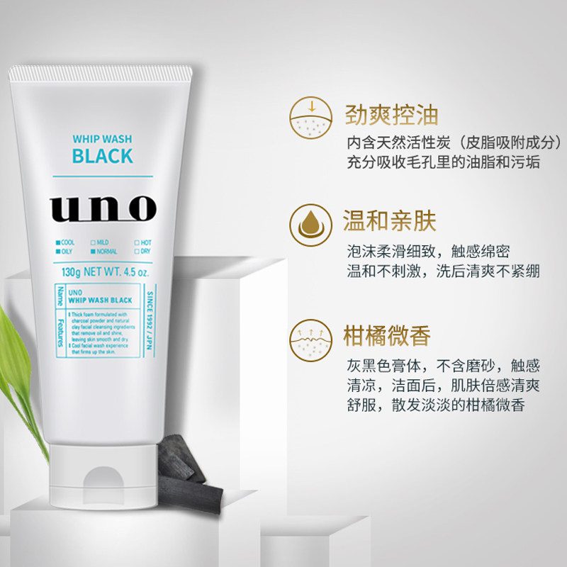 资生堂uno洗面奶男士专用控油祛痘补水保湿去黑头日本吾诺洁面乳
