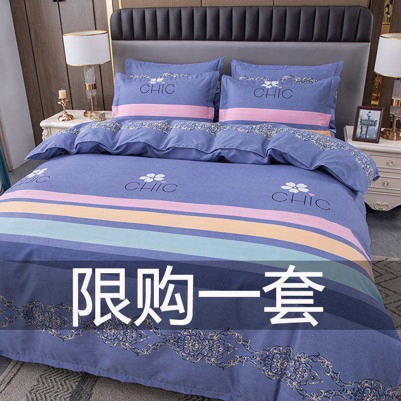 四件套纯棉全棉磨毛斜纹简约亲肤床上用品4件套1.8米2.0m被套床单
