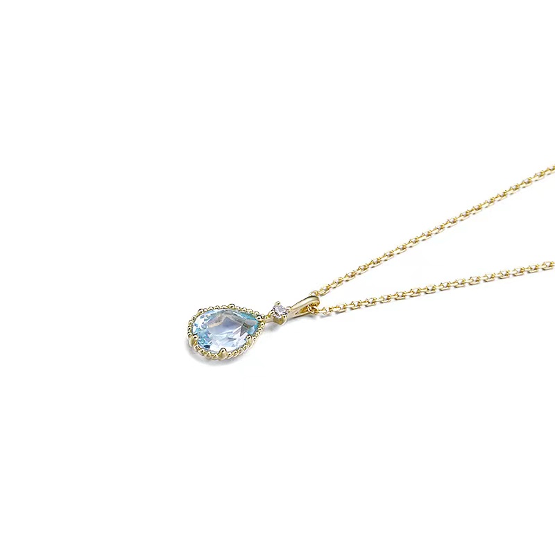 微蓝。日本工艺9K金天空蓝托帕石吊坠复古甜美小项链坠 加缪珠宝
