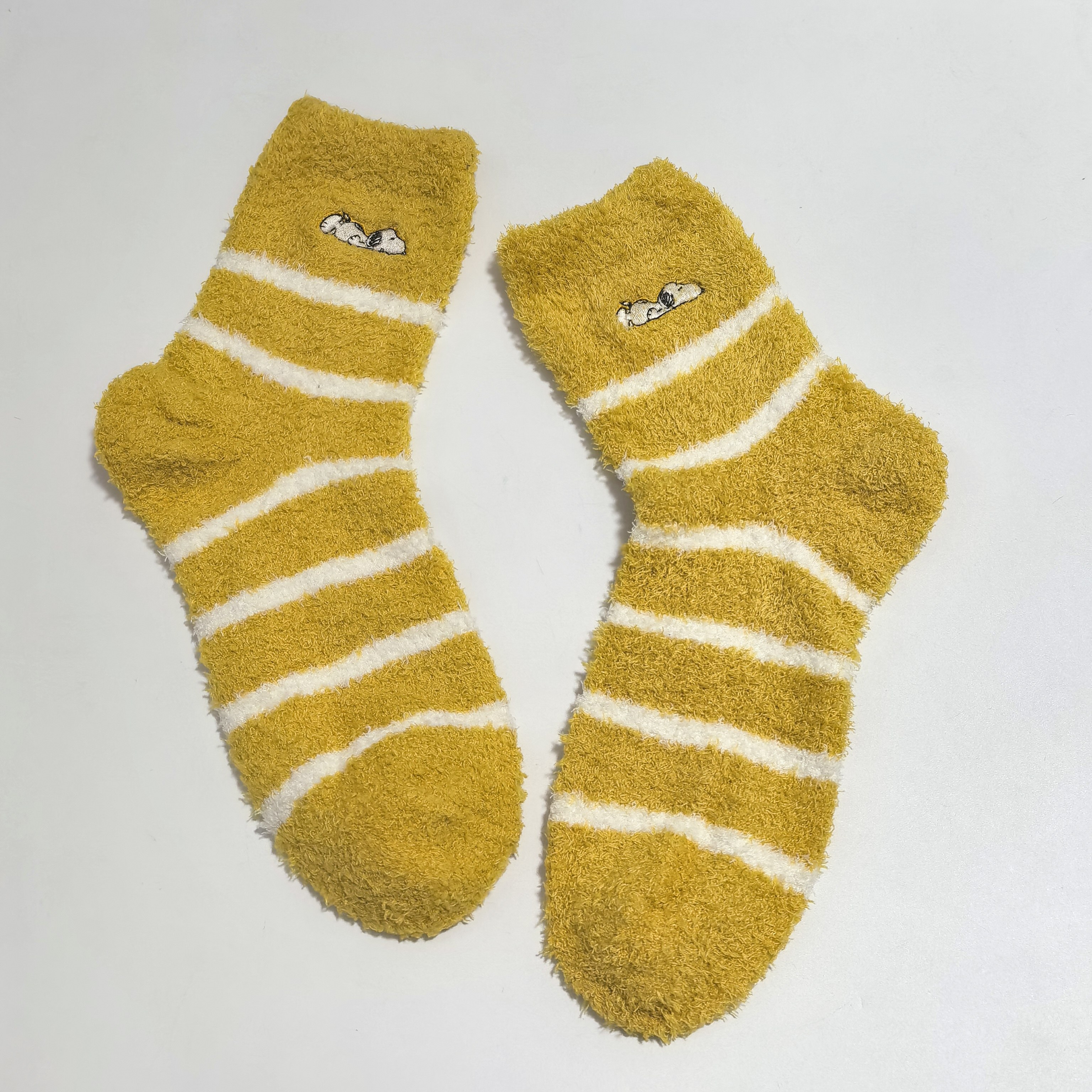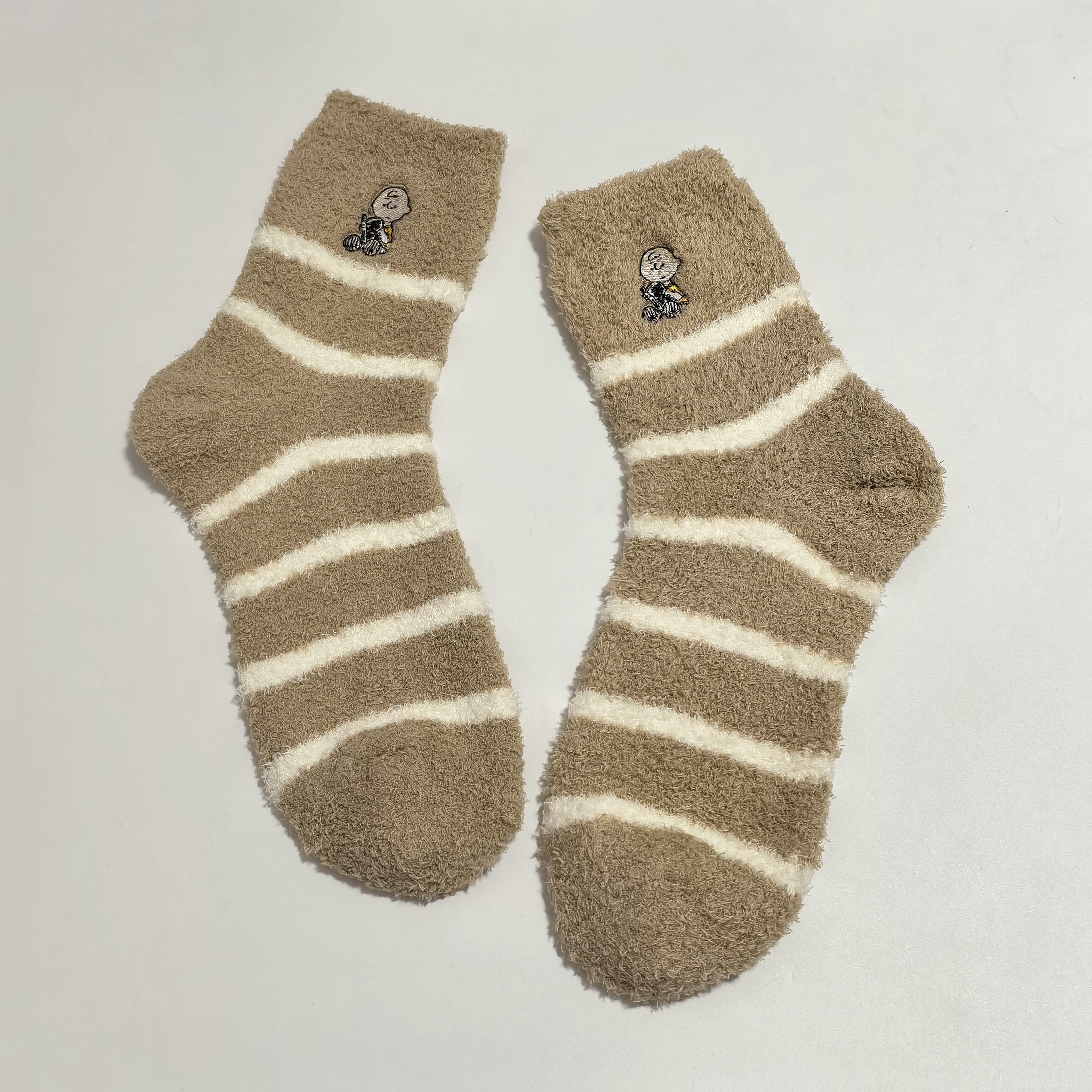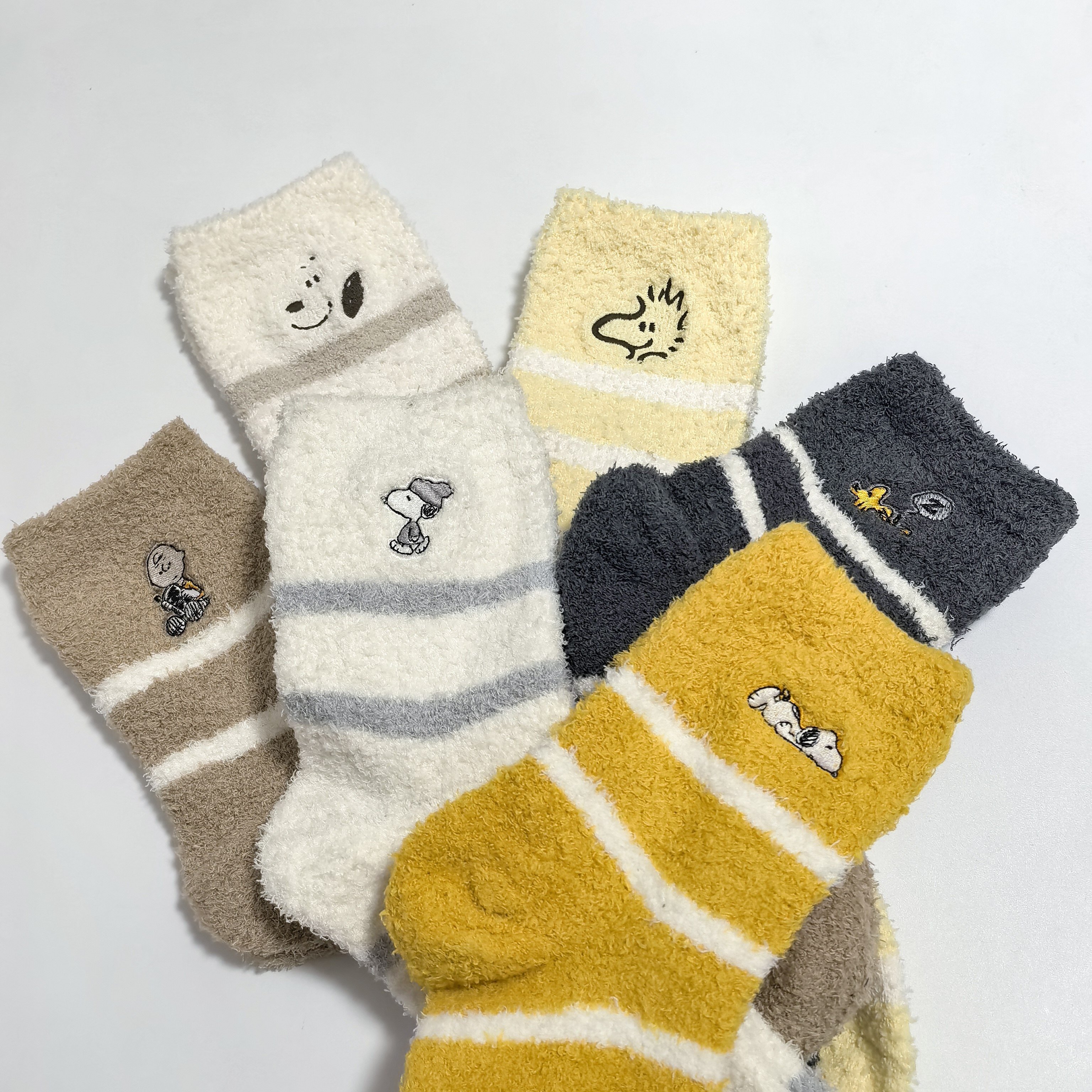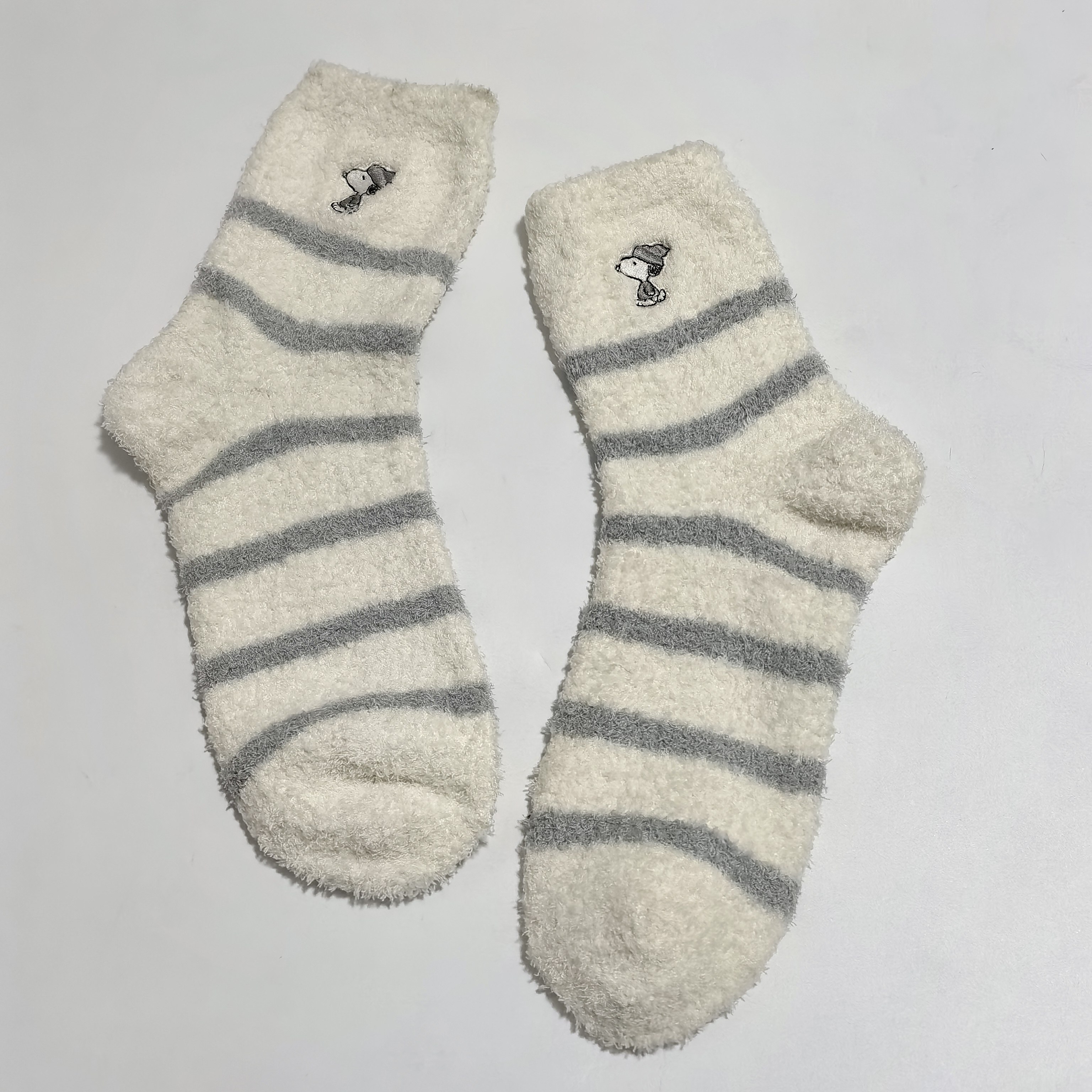 日单 可爱卡通史努比毛绒刺绣 成人袜子 中筒袜