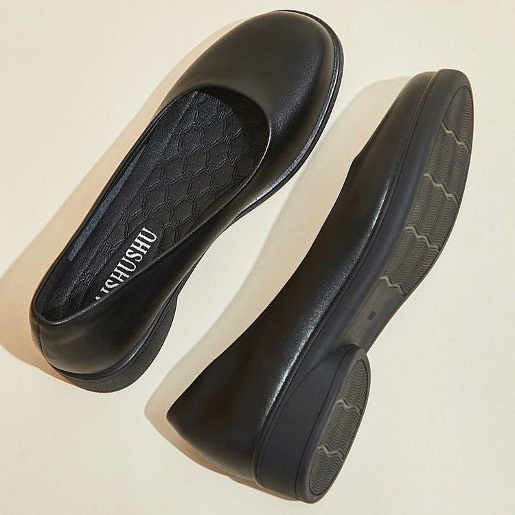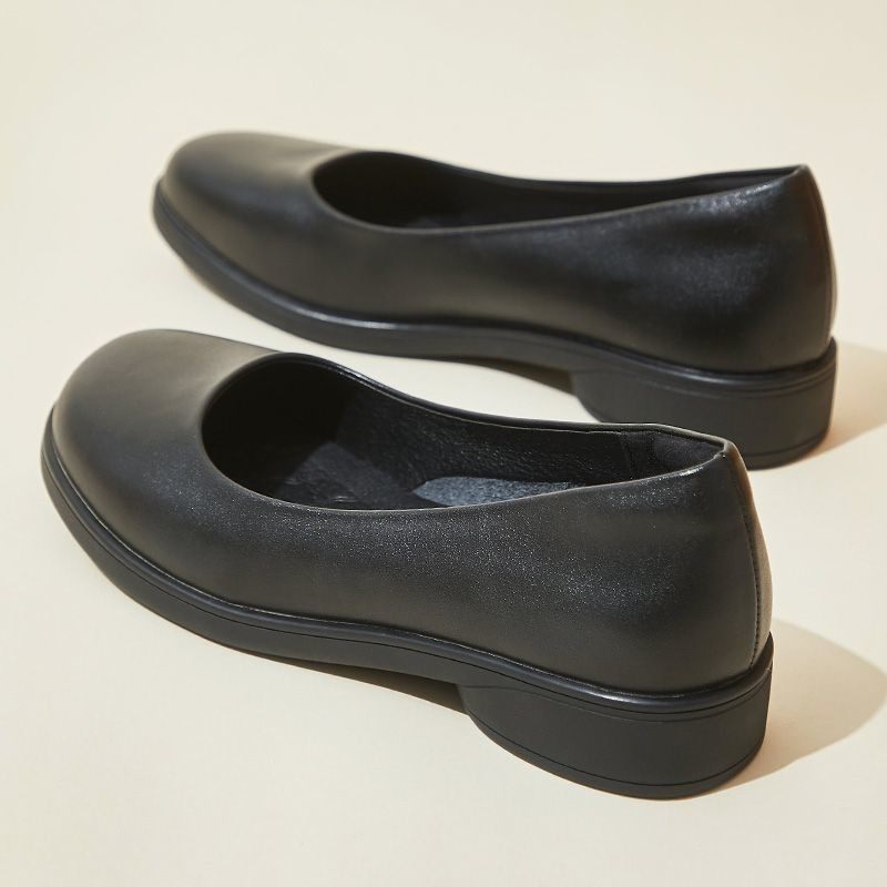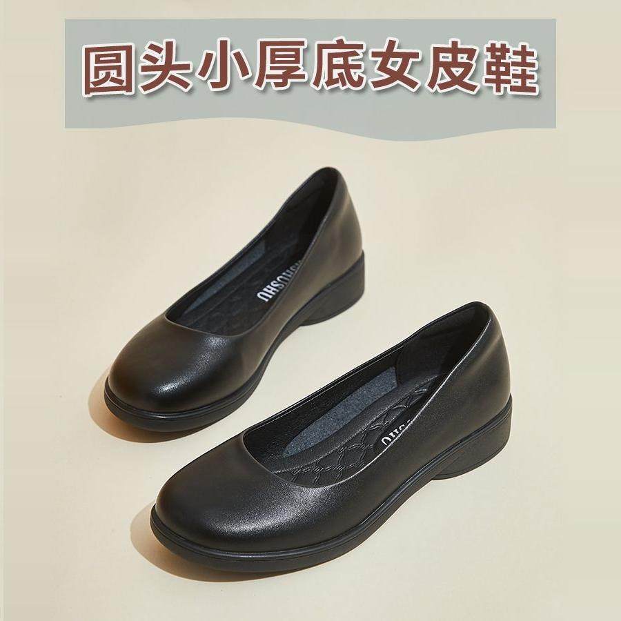 真皮软底单鞋女浅口皮鞋中跟黑色工作鞋圆头办公室舒适前台女鞋