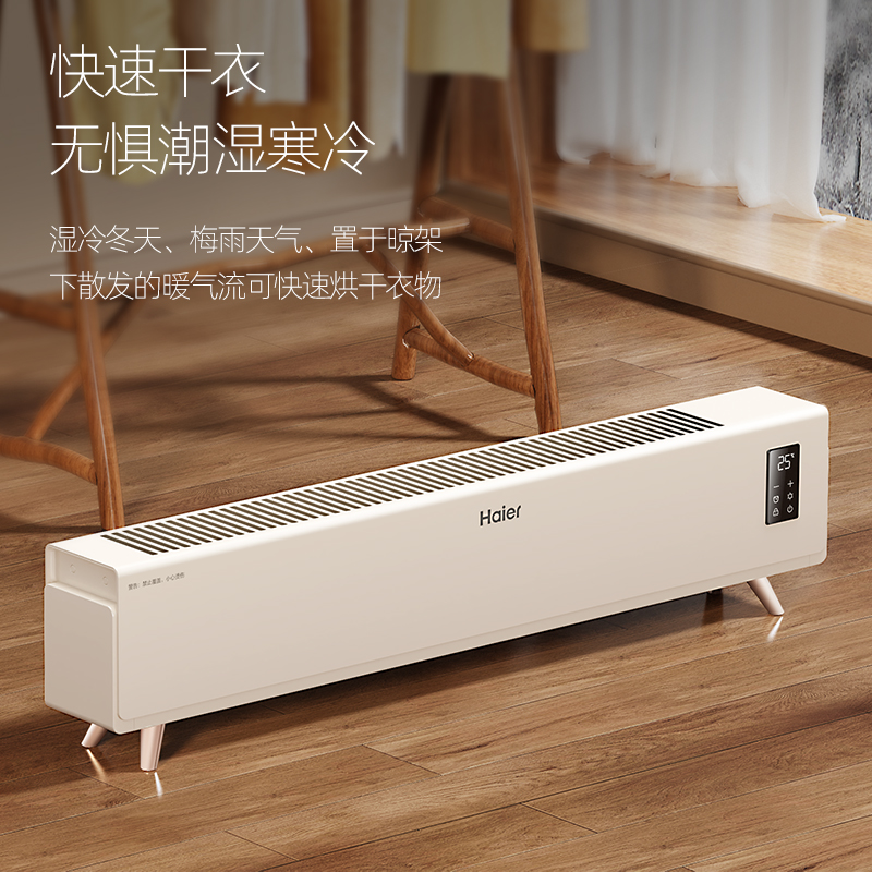 海尔踢脚线取暖器家用晾衣架烘衣服语音石墨烯电暖气器干衣暖风机