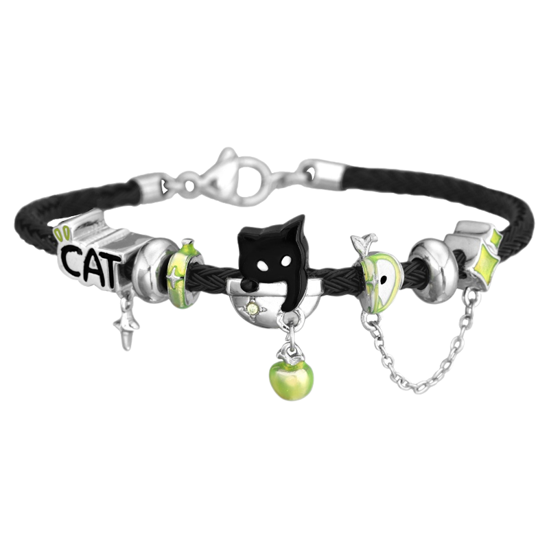 敲可爱!原创黑猫青苹果手绳手链高级感甜酷钢丝绳编编织男女手环
