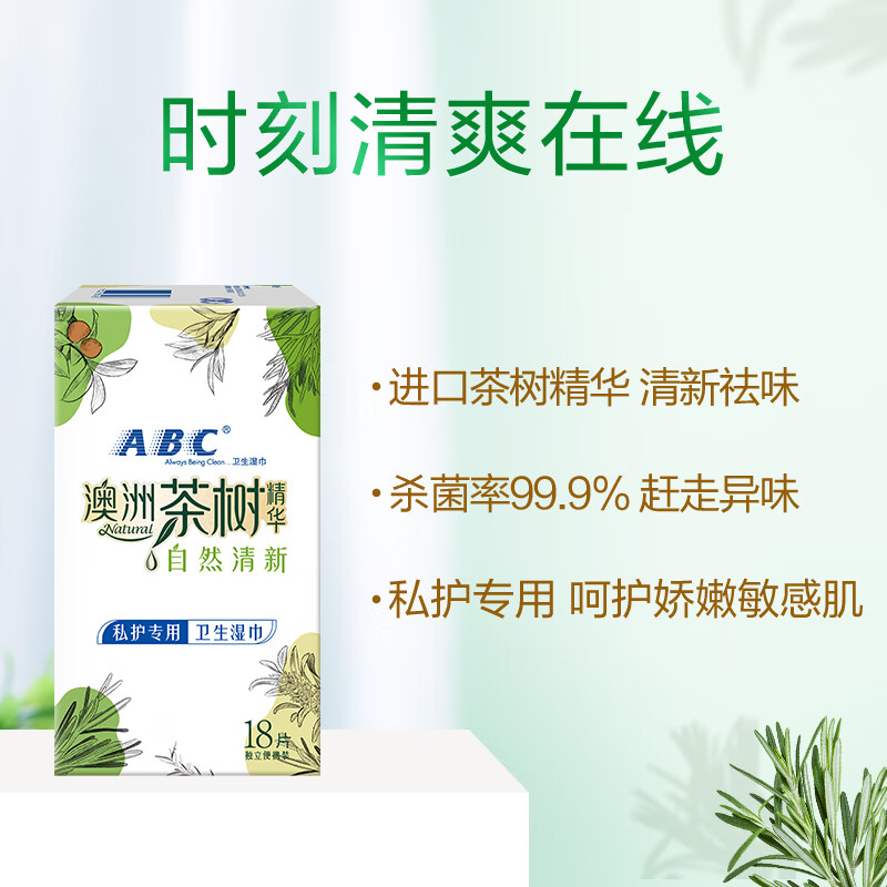 ABC私处卫生湿巾女性洁阴护理杀菌成人湿厕纸经期房事后独立包装
