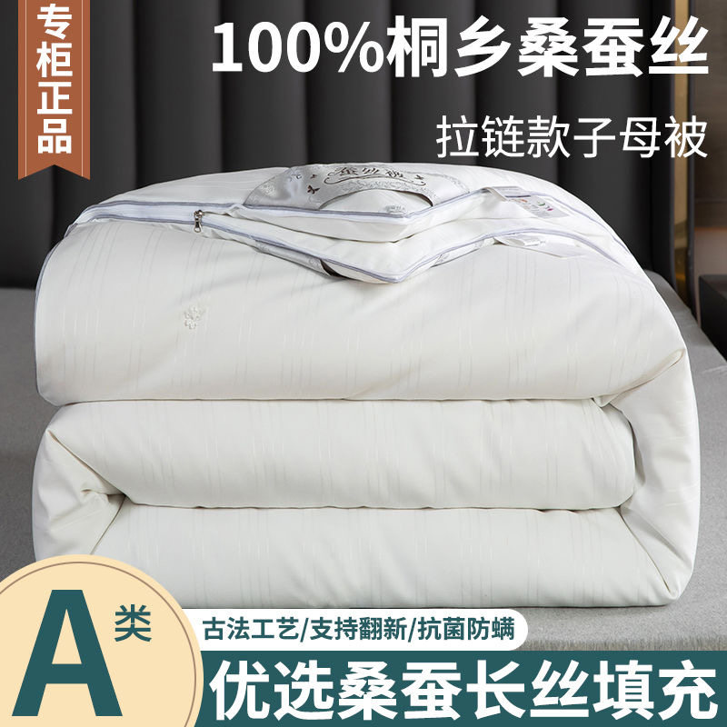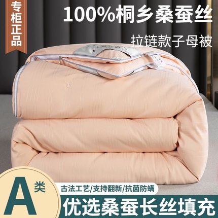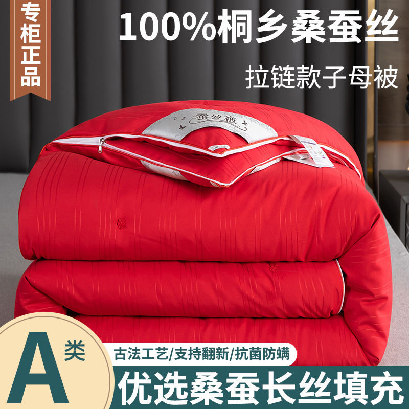 桐乡纯手工真丝蚕丝被100%桑蚕丝夏凉被子母被二合一春秋婚庆被芯
