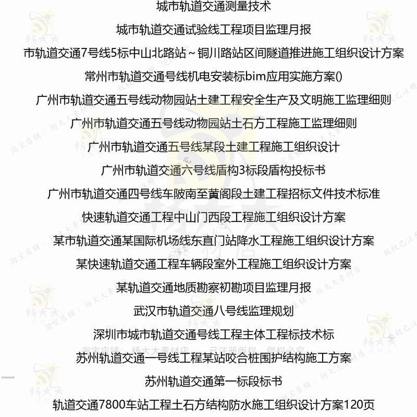 轨道交通相关方案 施工方案组织设计工程工施工设计监理方技术程
