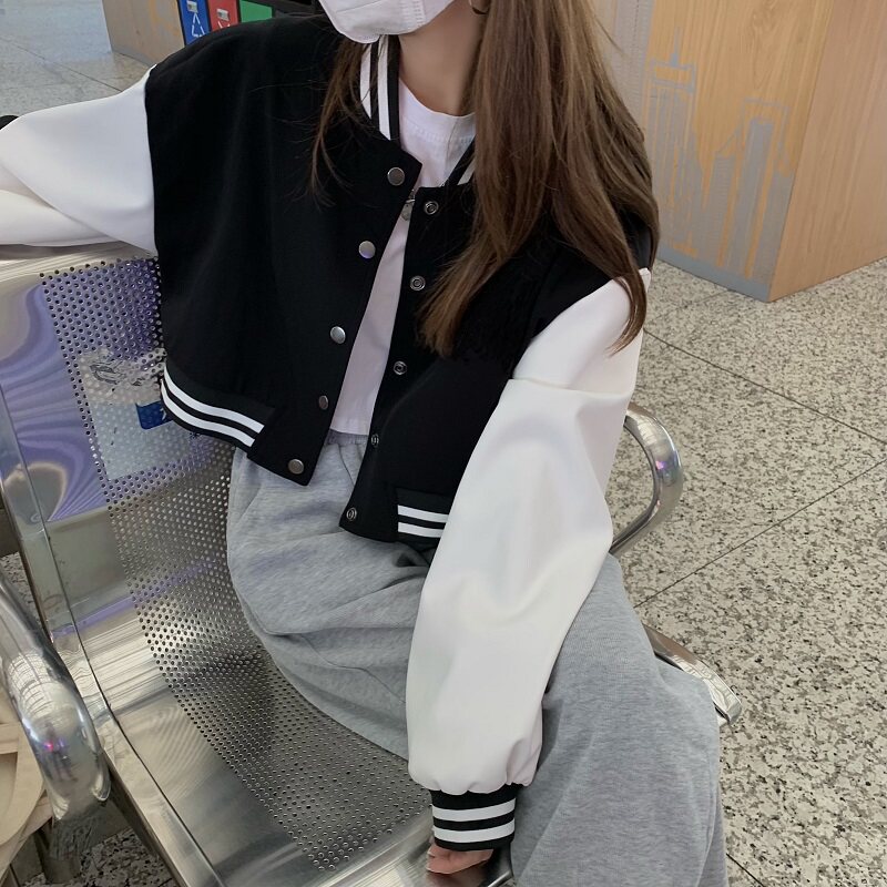 甜系美式短款外套女2026春季新款棒球服立领长袖黑白撞色外套女