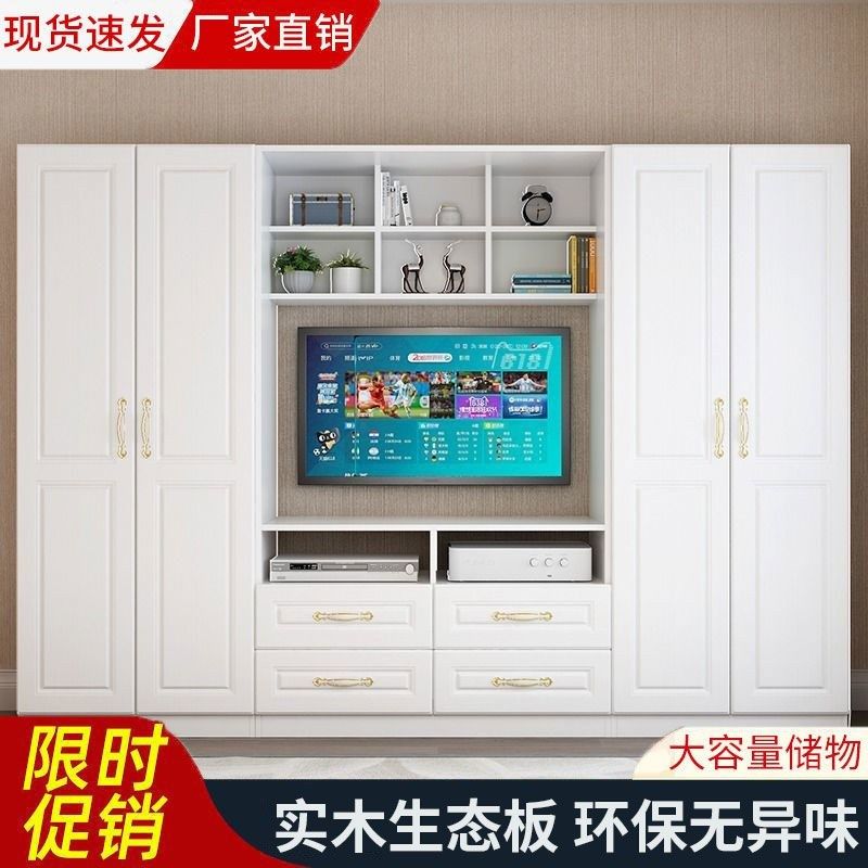 现代简约电视柜衣柜一体组合小户型卧室组装木质开门多功能储物柜